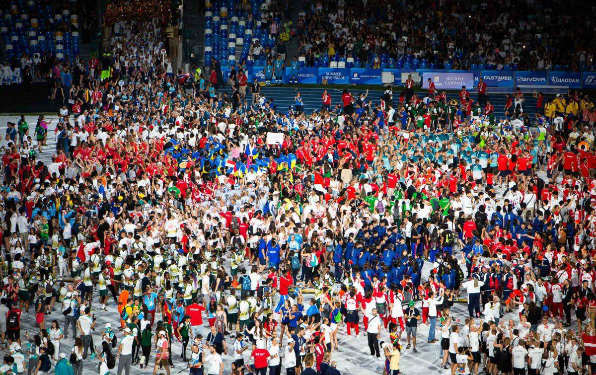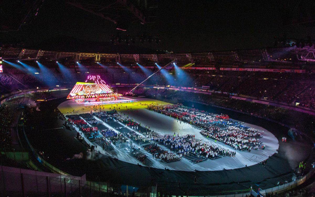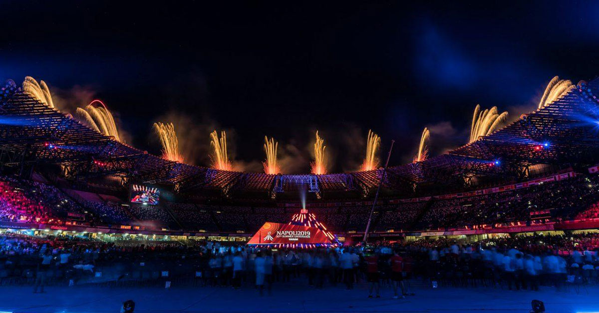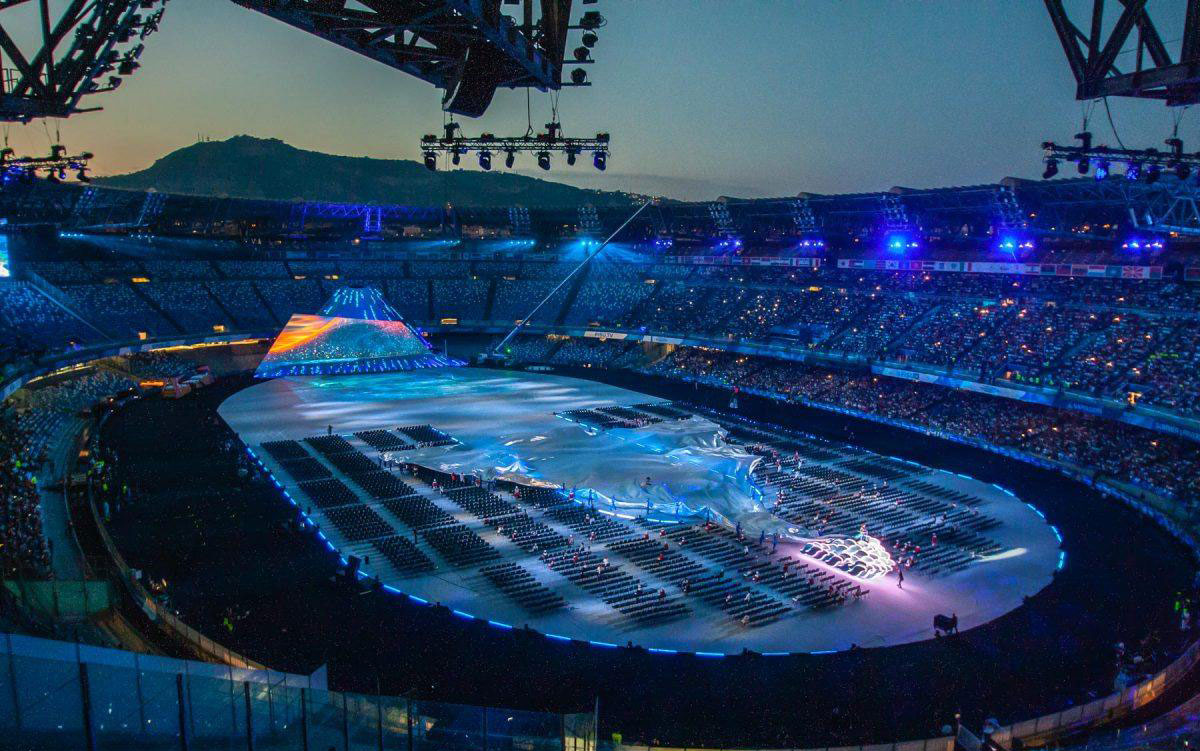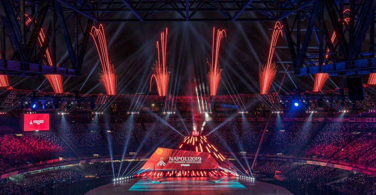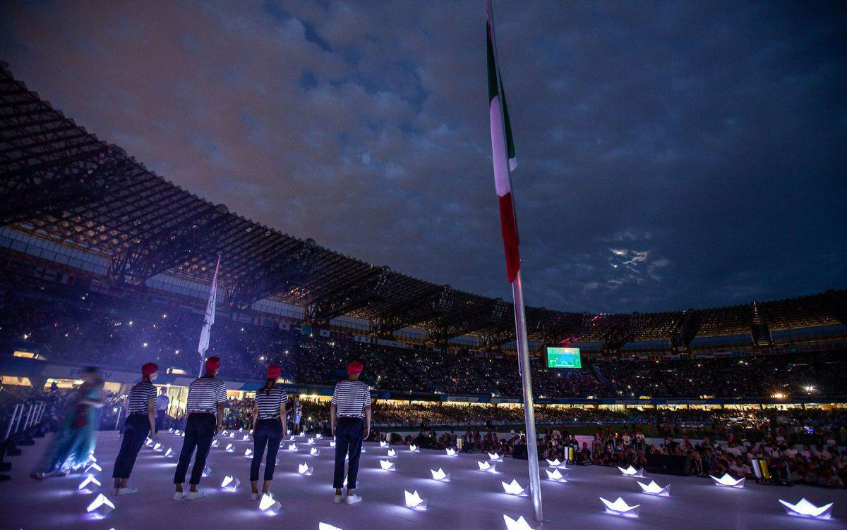 在數(shù)萬名觀眾和運動員的見證下,第30屆世界大學(xué)生夏季運動會在意大利那不勒斯正式開始了。開幕式現(xiàn)場的火炬點燃儀式由那不勒斯足球隊前鋒因西涅將燃燒著的火球踢向做成火山形象的“山頂”,并點燃主火炬。盲人男高音歌唱家安德烈·波切利更是以一首《今夜無人入睡》將開幕式引向高潮。