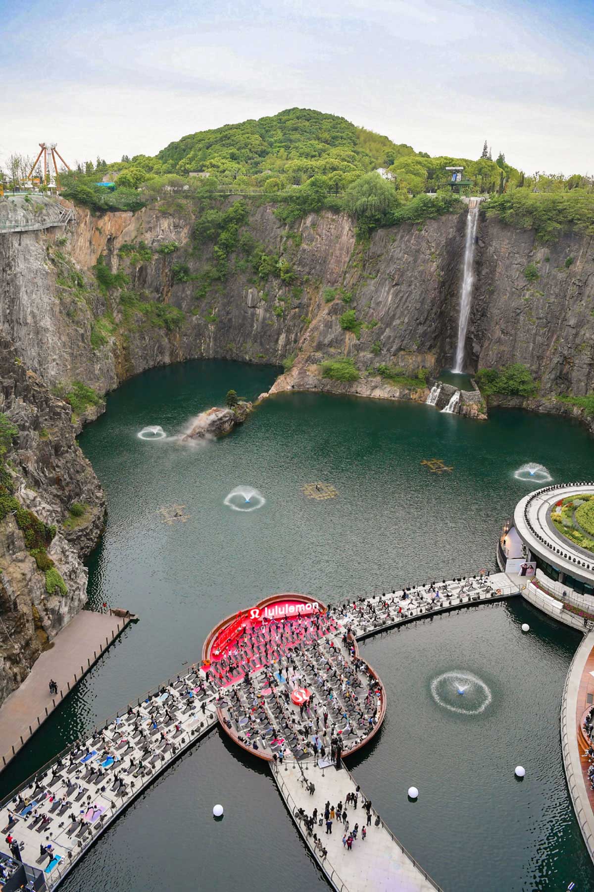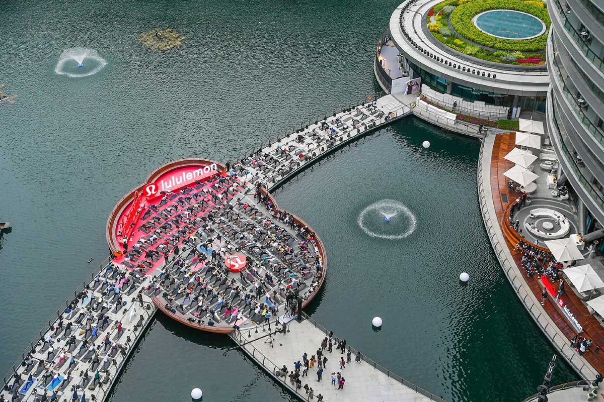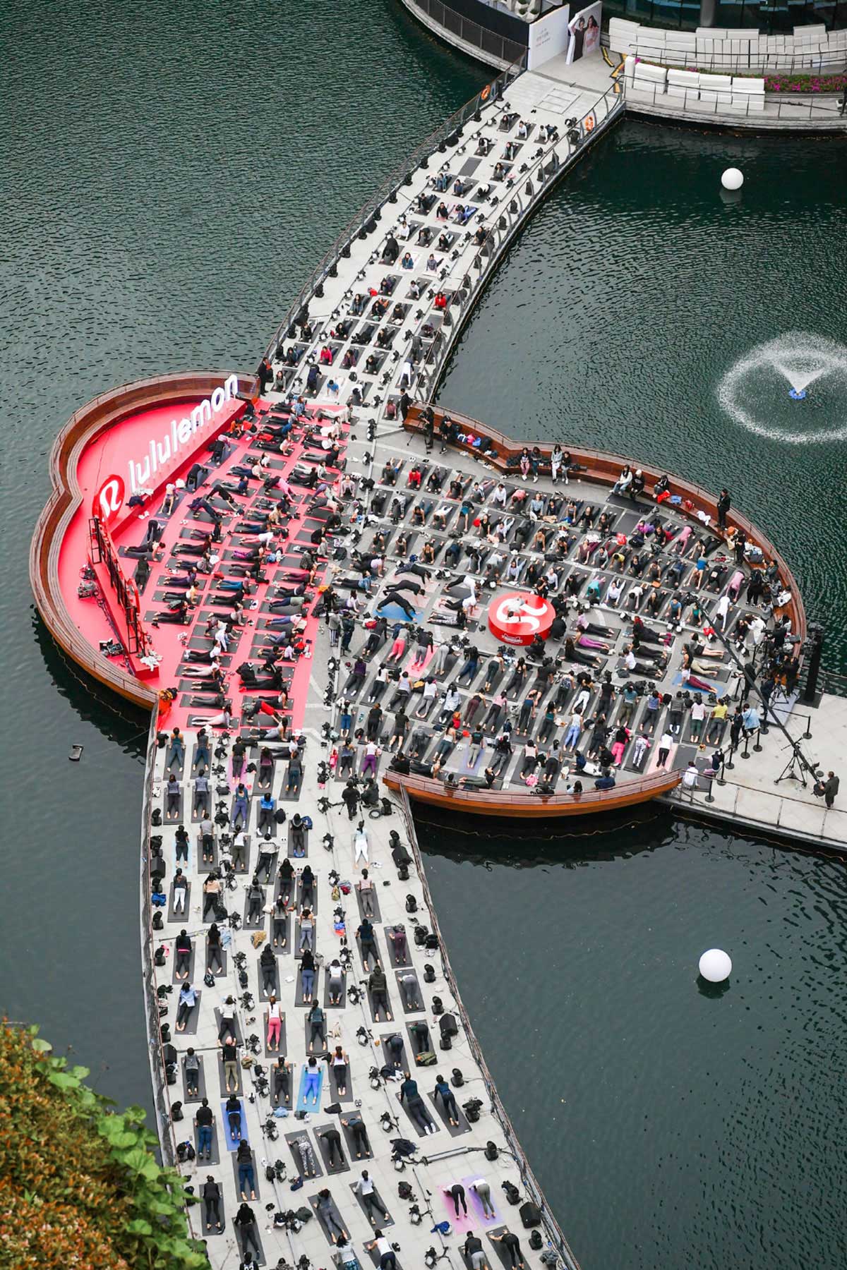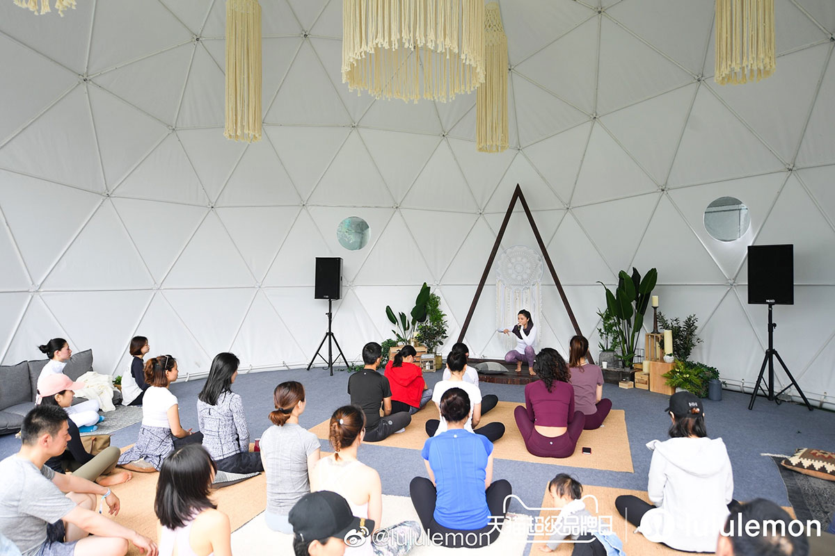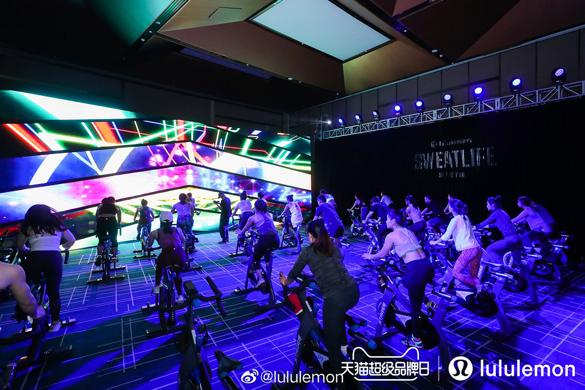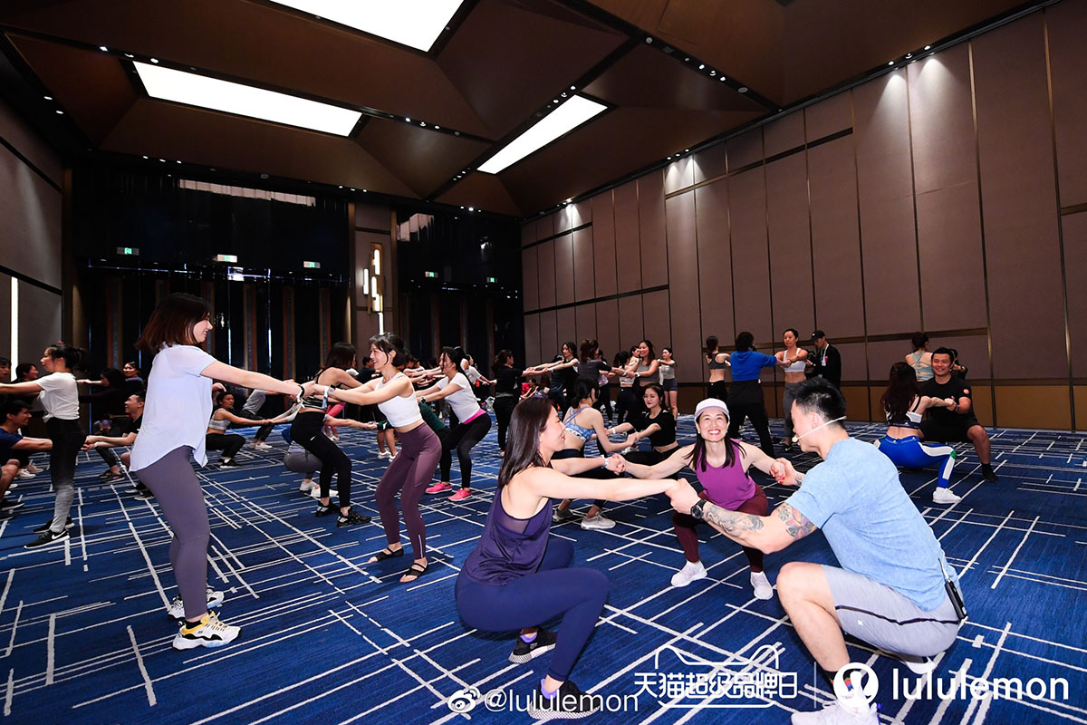 加拿大運動生活品牌lululemon包下了整個上海佘山世茂洲際酒店,攜手天貓,舉辦了一場“這一天,人形不設(shè)限”的天貓超級品牌日活動,整個酒店從宴會廳到前廳,再到戶外,百人瑜伽、冥想課堂、動感單車、攀巖等各類熱汗項目齊聚,就連過道都是lululemon的秀場,更有上百人身著運動衣在酒店上演了一次“集訓(xùn)課堂”。