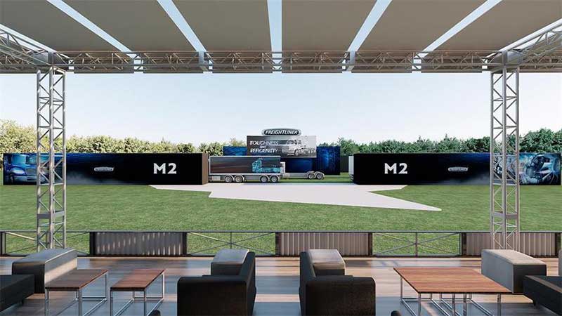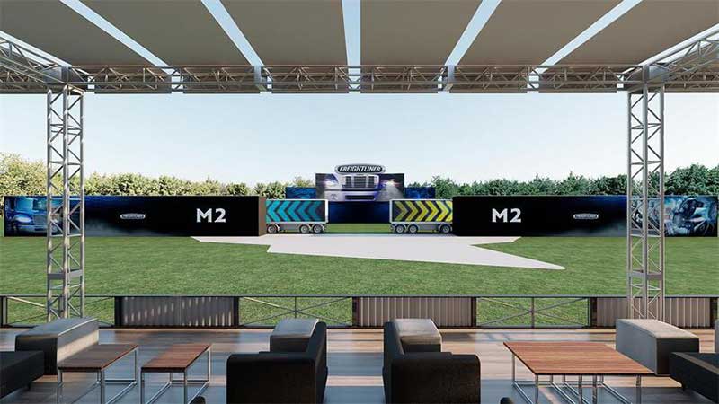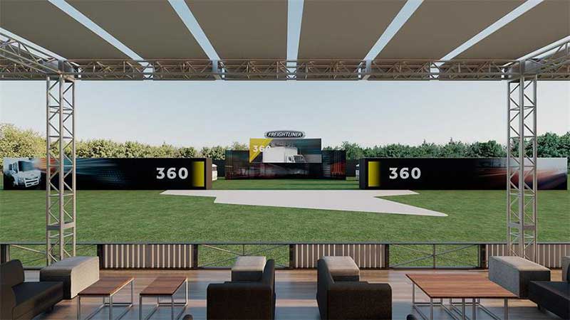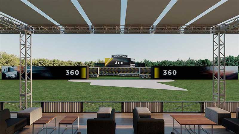 大型的車輛的發(fā)布會怎么做?不能選在室內(nèi)搭建舞臺,客戶要求卡車要出現(xiàn)在舞臺上??纯碅lex Juarez的設(shè)計(jì)思路,這種方式還可以衍生出一些具有機(jī)動能力的大型機(jī)械設(shè)備的發(fā)布會。開始時(shí)圍墻內(nèi)的安裝了大型車廂卡車進(jìn)行行走表演,展示卡車強(qiáng)大貨箱,最后沒有裝載車廂的卡車頭開出圍墻,進(jìn)行靜態(tài)展示。