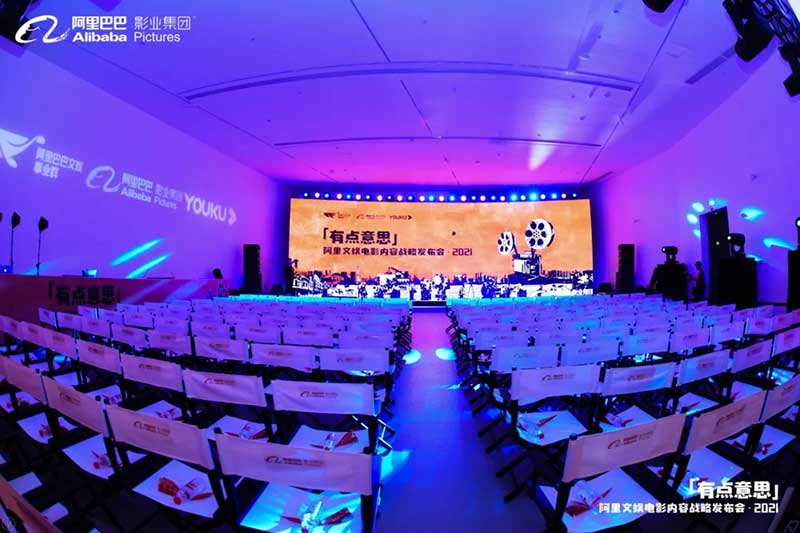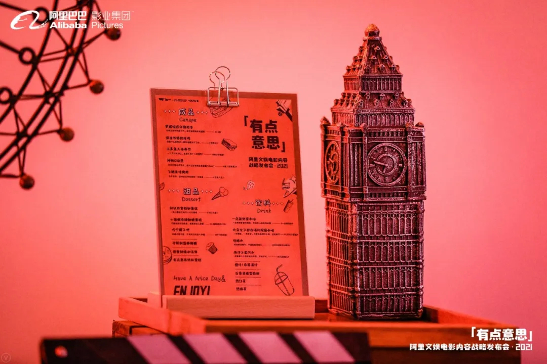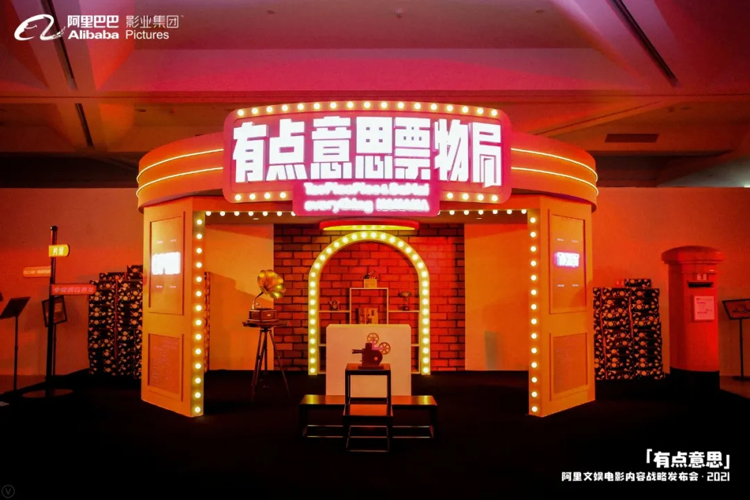 阿里影業(yè)近日在廈門舉辦主題為“有點(diǎn)意思”的阿里文娛電影內(nèi)容戰(zhàn)略發(fā)布會(huì)。發(fā)布會(huì)主要以各種電影及片場(chǎng)的元素來布置。