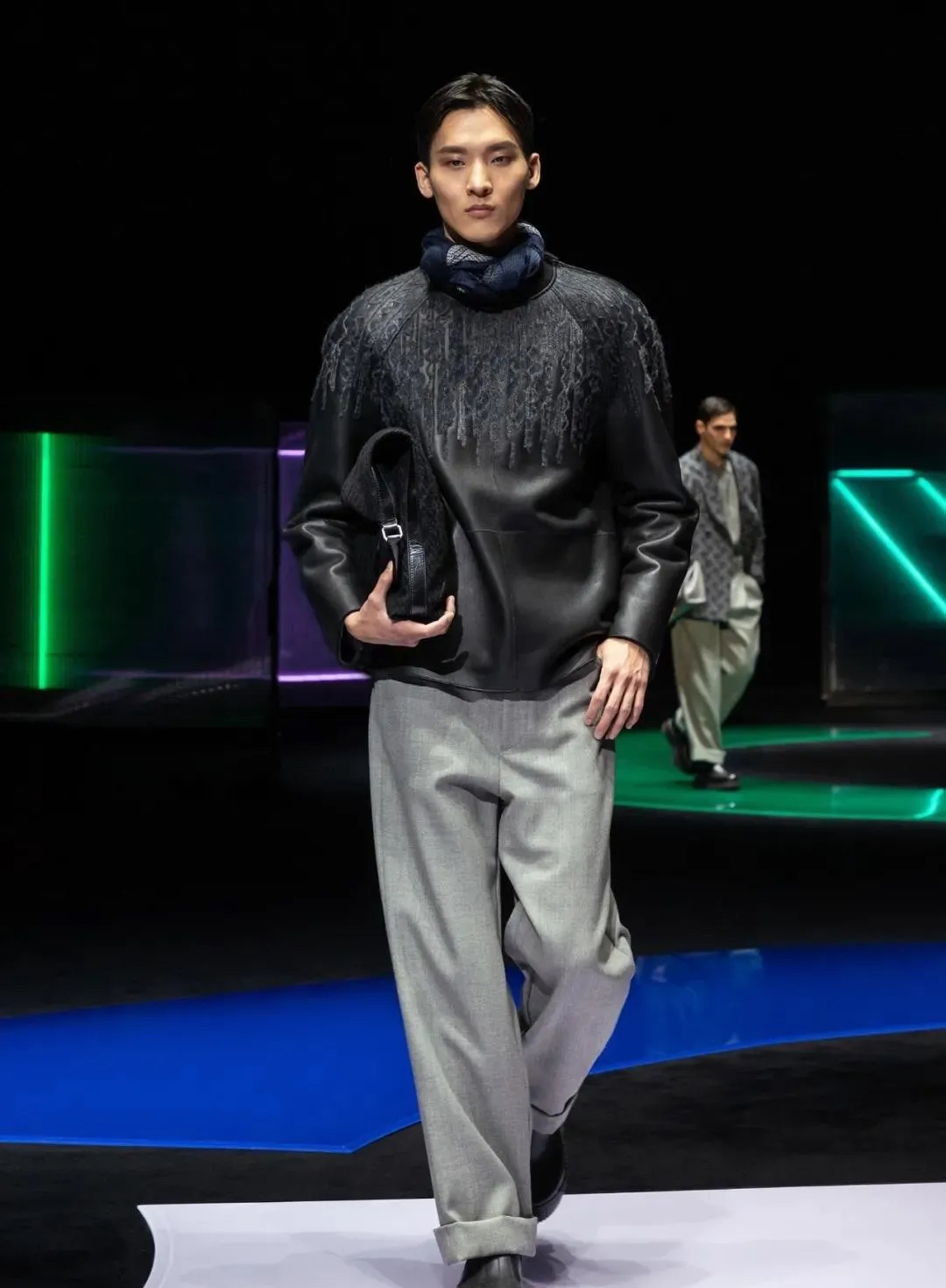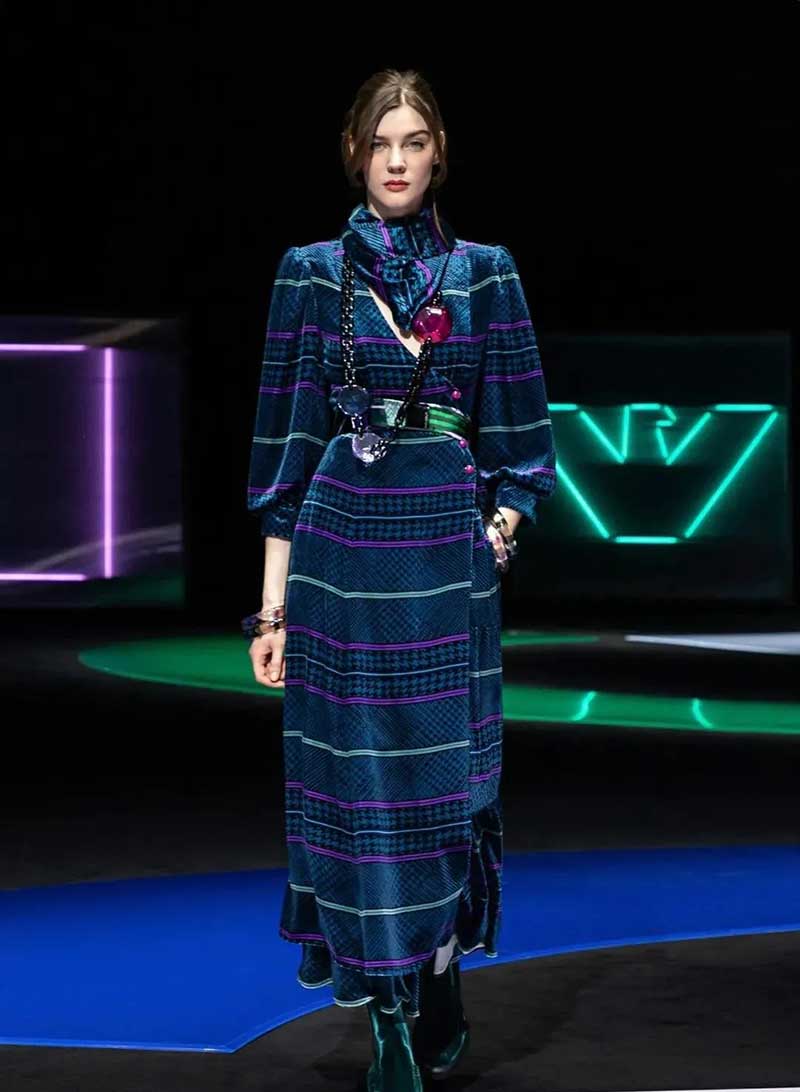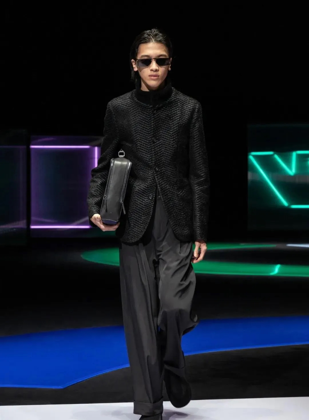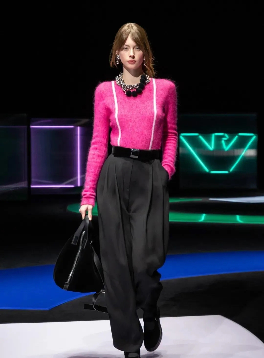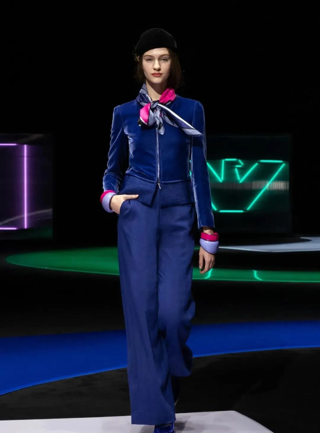阿瑪尼Giorgio Armani 2021秋冬男女裝系列時(shí)裝秀秀場(chǎng)以霓虹色裝飾,彌漫著80年代的迷人氣氛,與80年代迷人的時(shí)髦基因共同搖擺Pop新浪潮。