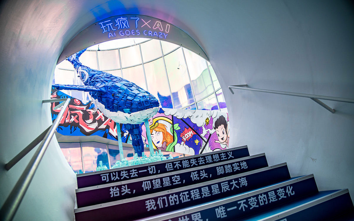 一場ALIBABA A· Museum 玩瘋了X AI互動展覽落地上海西岸油罐藝術(shù)中心,此次展覽策劃設(shè)計了“玩瘋了神燈”、“玩瘋了的筋斗云”、“玩瘋了的森林”以及“玩瘋了的墨鏡”四大板塊內(nèi)容,從不同的角度體現(xiàn)“玩瘋了”的概念。?