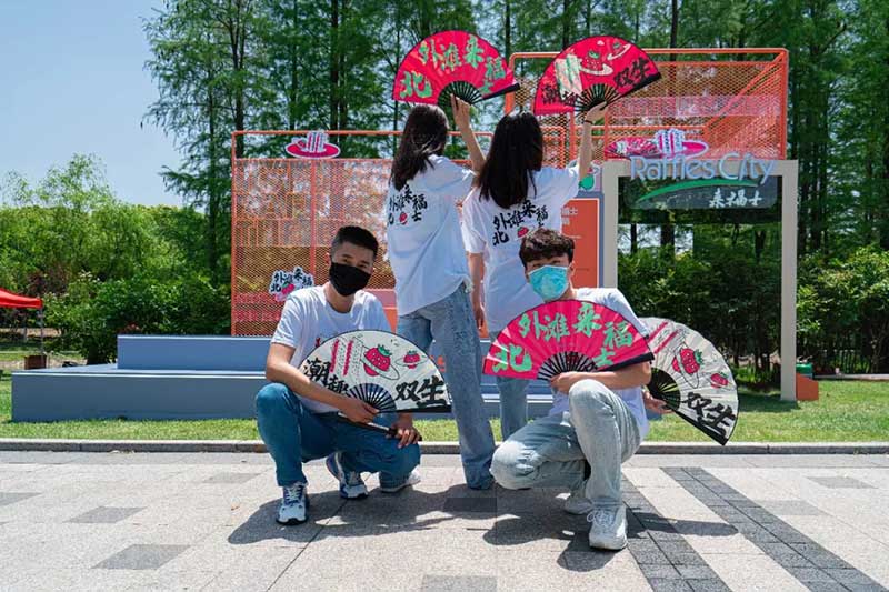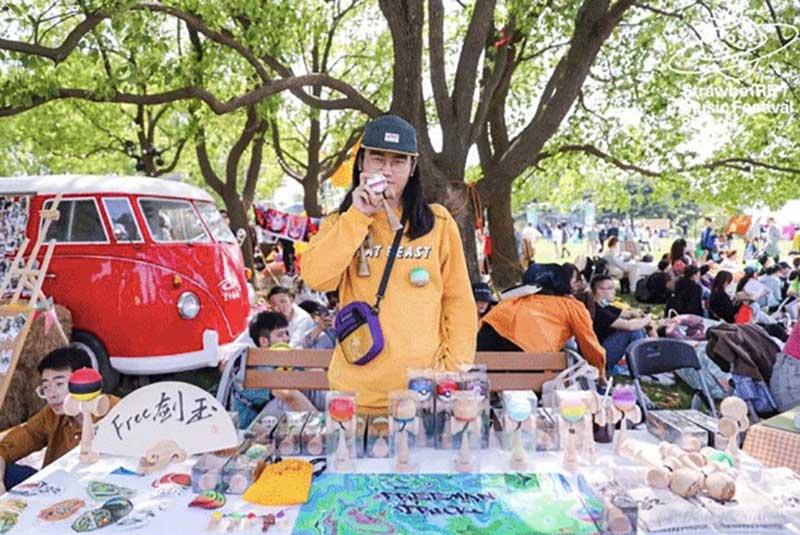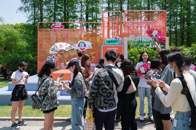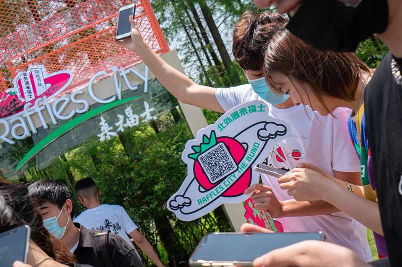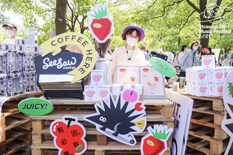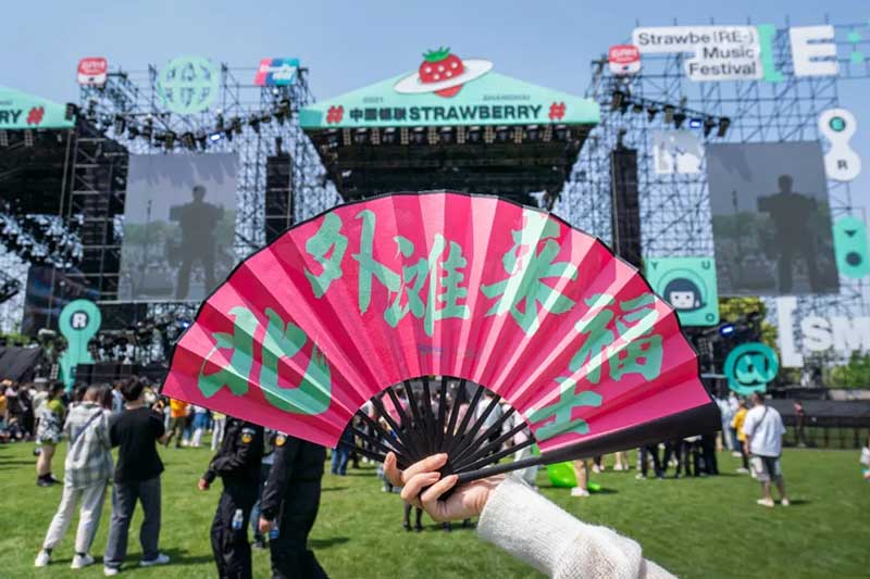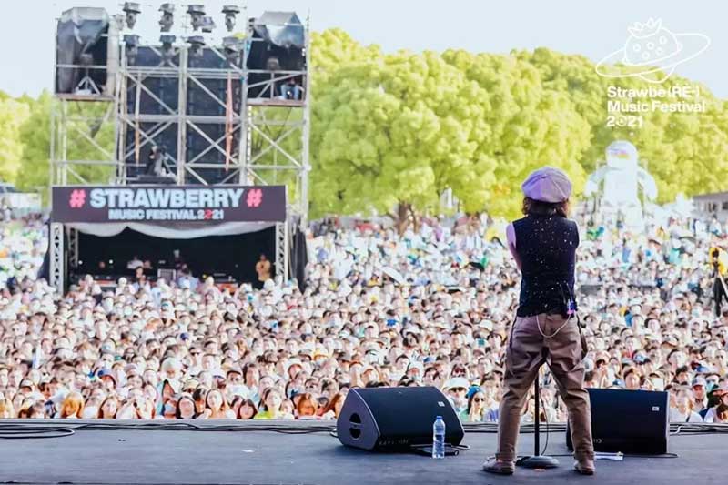 在草莓音樂節(jié)現(xiàn)場,除了精彩的表演,來自各品牌爭奇斗艷的展臺,也很值得一逛。例如從白天火到深夜的北外灘來福士展臺,明亮的熒光橙在一眾展臺里非常吸睛。分為上下兩層,用橙色網(wǎng)格圍繞,怎么拍都好看的北外灘來福士展臺,因為超高的顏值和出片率,一度在現(xiàn)場引來排隊拍照的熱潮。無論是背靠青蔥樹林的二層展臺,或是巧用臺階拉出大長腿的一樓區(qū)域,都是分分鐘出大片的“擺拍圣地”。巧用鏡子元素拉長視覺空間的“秘密基地”,更是惹來神顏小姐姐們前來打卡。入夜后,亮起橙色LED燈的展臺更為炫目。在會發(fā)光的臺階上,跟著主舞臺的音樂節(jié)奏,肆意搖擺身體,感受夜間的徐徐微風(fēng)和粉絲的濃厚熱情,這一屆草莓音樂節(jié)著實(shí)令人難忘。