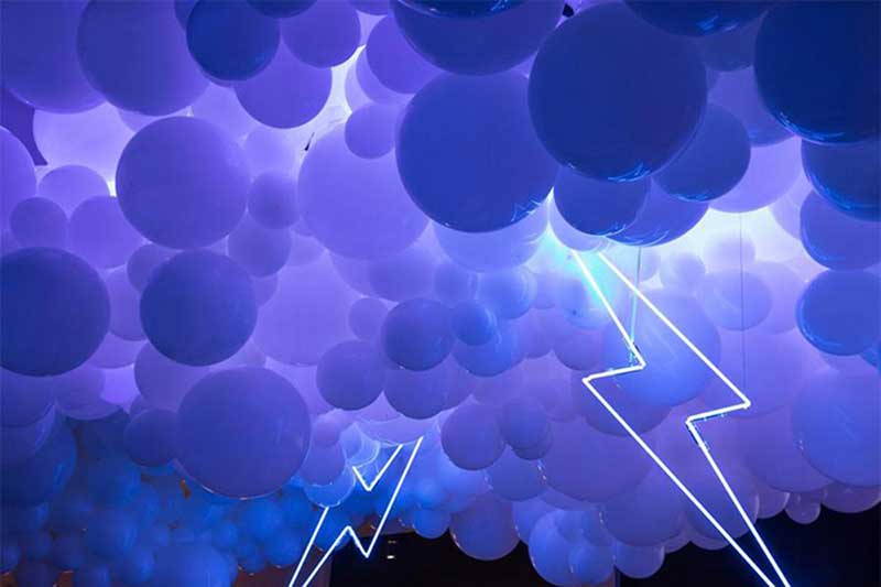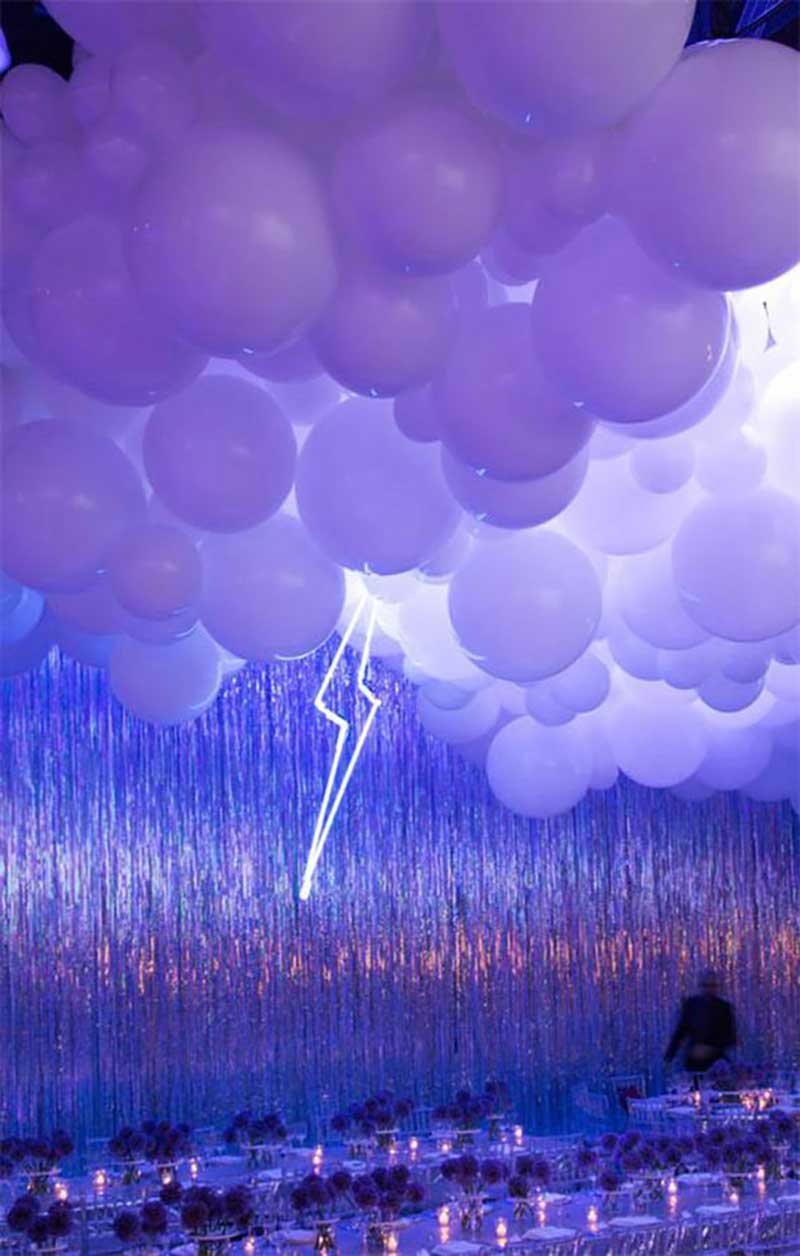 為了慶祝他們女兒的成人禮,主辦方想要定制一個(gè)活動(dòng)在外觀和感覺(jué)上都充滿藝術(shù)感,在視覺(jué)上能夠體現(xiàn)成人禮女孩的精神品質(zhì)的慶?;顒?dòng)。以“閃閃發(fā)光”為設(shè)計(jì)主線,使用金屬銀色的現(xiàn)場(chǎng)色調(diào),利用各種發(fā)光材料,如發(fā)光的亮片、絲帶等,并由使用霓虹燈來(lái)進(jìn)行強(qiáng)調(diào),成功創(chuàng)造了一個(gè)充滿活力和耀眼的夜晚,完美地反映了主賓的光芒,而現(xiàn)場(chǎng)采用氣球代表“云朵”,霓虹燈管制作“閃電”,也是非常實(shí)用的裝飾組合。