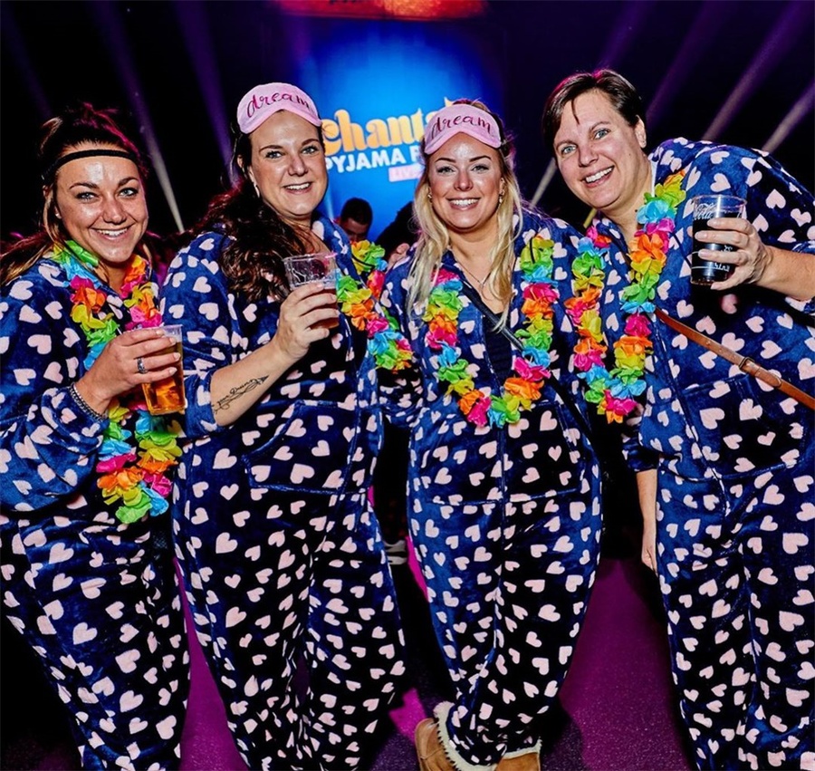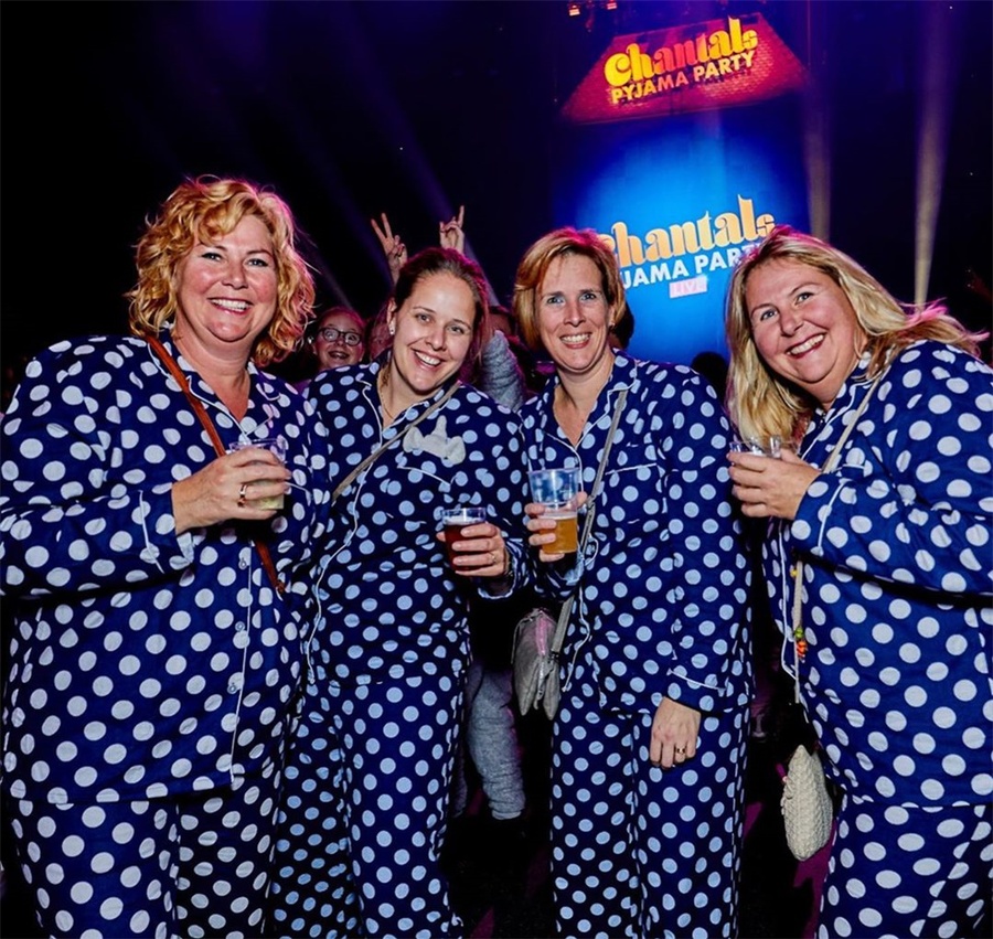 睡衣派對是派對的一種,通常是社會中的人們聚在一起主要用于慶祝和休閑的一種方式。尚塔爾的睡衣派對則是一檔荷蘭電視節(jié)目,由尚塔爾.簡森主持,在RTL 4頻道播放,同名演出活動也是該電視節(jié)目的線下推廣活動,此次尚塔爾的睡衣派對活動吸引超多穿著不同款式睡衣的朋友們參與,當(dāng)一個圓形床墊從天而降時,尚塔爾的睡衣派對的狂歡夜正式開始。