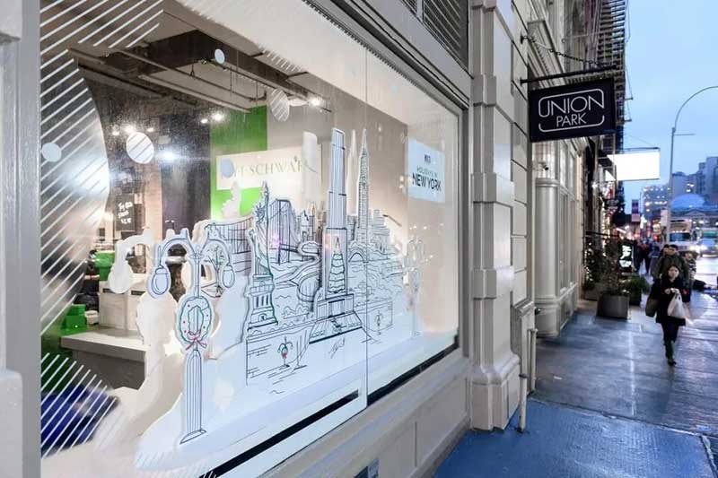 聯(lián)合公園(活動場地名字)的入口是向紐約著名的玩具店FAO施瓦茲(FAO Schwarz)致敬,它被賦予了一個貼切的新名字,叫NYI 施瓦茲(NYI Schwarz)。內(nèi)置的單色時裝,這個模擬的玩具店作為了活動的登記區(qū),并在這里展示紐約的立體天際線(插畫風(fēng)格的設(shè)計)。玩具兵們在快閃時刻登上地鐵臺階,伴著艾麗西亞·凱斯(歌手)的《紐約》(歌曲)起舞,在洛克菲勒中心上演了一場精彩的表演。