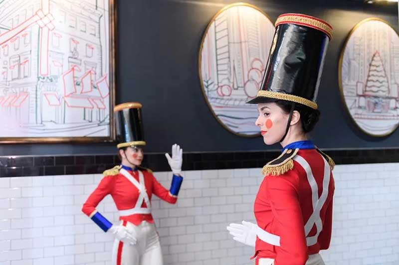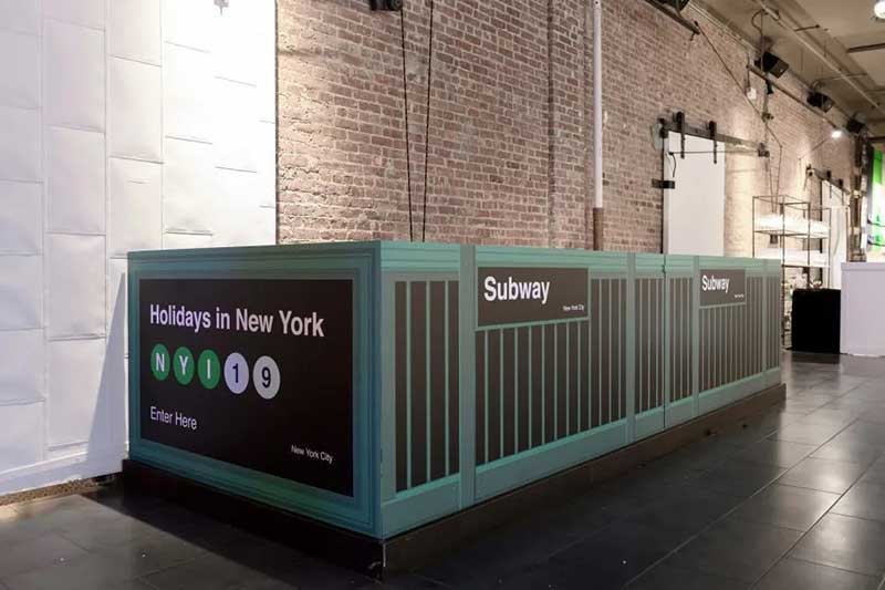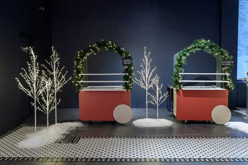 在紐約互聯(lián)有限公司的節(jié)日派對上,活動在重現(xiàn)紐約最具標(biāo)志性的度假地點,讓客人沉浸在故事書般的旅程中?;顒訌囊粋€喜慶的節(jié)日櫥窗旁進入,經(jīng)過一個受紐約著名的FAO施瓦茲玩具商店啟發(fā)的玩具店,在活動現(xiàn)場他們將穿越城市的各個景點。在進入通往洛克菲勒中心的地鐵站之前,客人們會經(jīng)過擠滿了街頭手推車的中央公園和它著名的溜冰場,在這里可以來一張完美的照片。他們在唐人街吃飯,在廣場酒店的壁爐旁舒舒服地休息一下,最后,還可以吃一頓奶昔小屋卡車的夜宵。