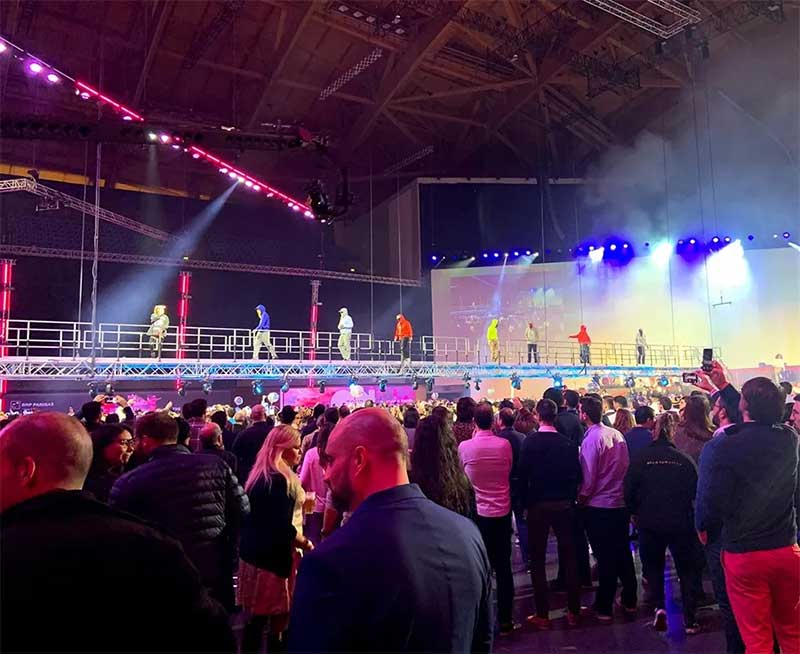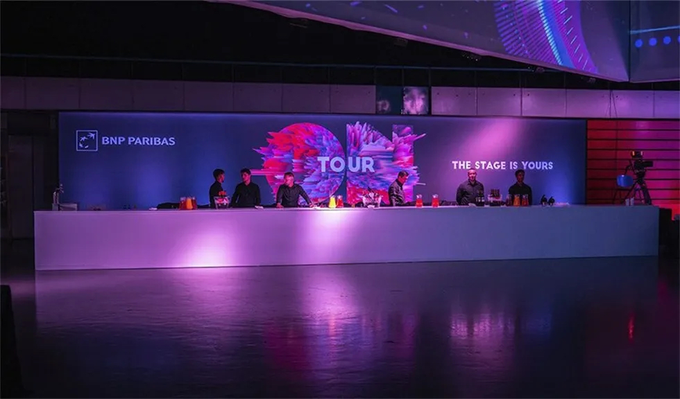 法國巴黎銀行在里斯本舉辦了其葡萄牙分行的年度員工派對會議。這家法國銀行為數(shù)千名員工準(zhǔn)備了驚喜,從空中降下來的跑道讓在場的每個(gè)人都驚訝,Carl?o樂隊(duì)的出現(xiàn),更是讓現(xiàn)場完全沸騰。