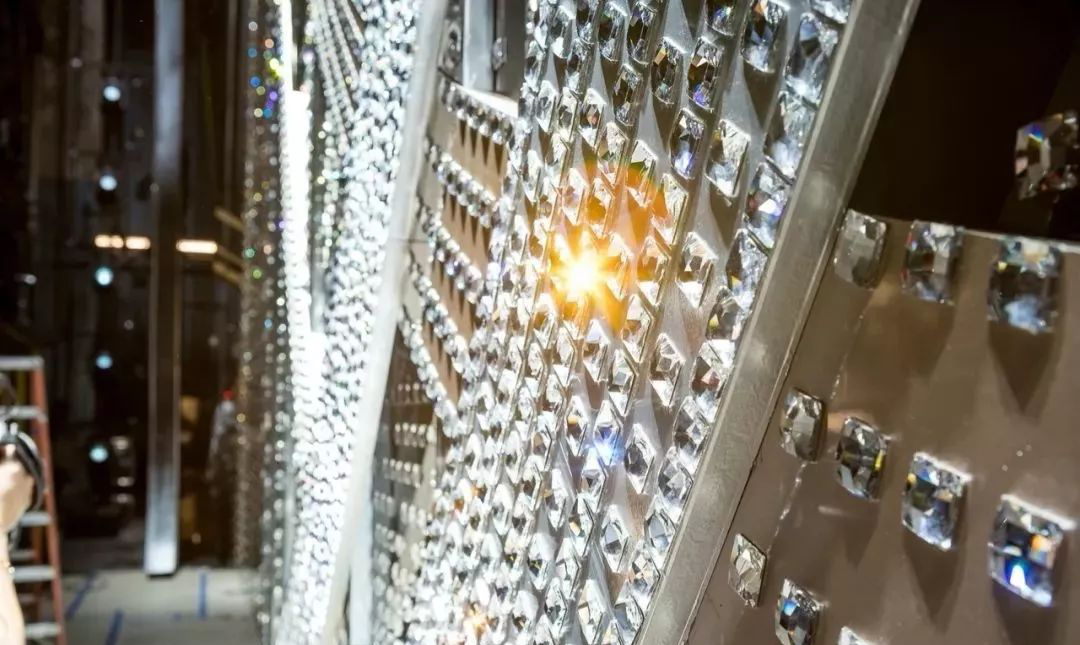 主舞臺由施華洛世奇水晶元素打造而成,由一個600磅重的水晶幕簾、一個38英尺高的主體形象和一個1100磅重的漩渦結(jié)構(gòu)構(gòu)成。舞臺上裝飾著40,000顆水晶,為舞臺增添了璀璨的魔幻元素。水晶賦予設計以漂浮的魔幻色彩的可能性,將幾乎萬花筒般的奇觀帶入一個舞臺中。