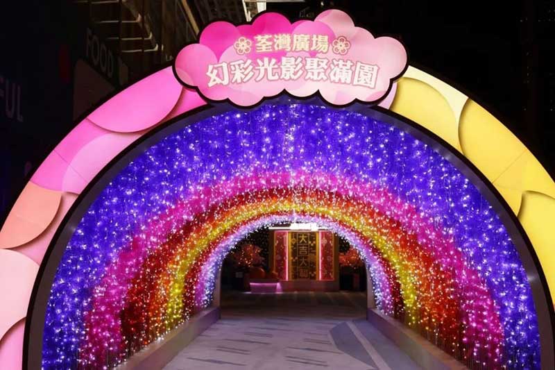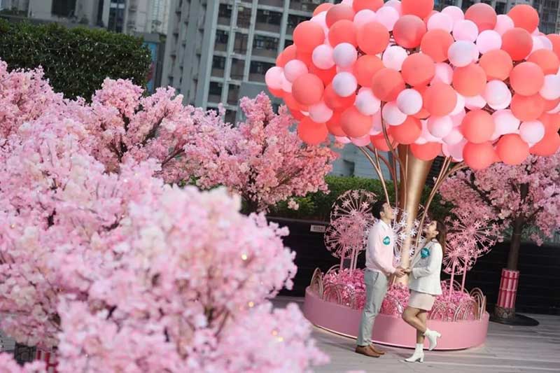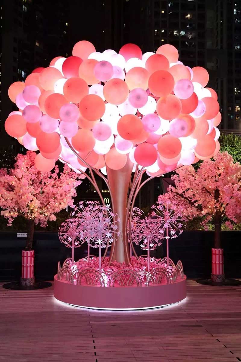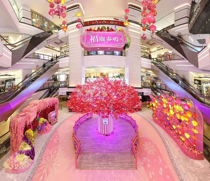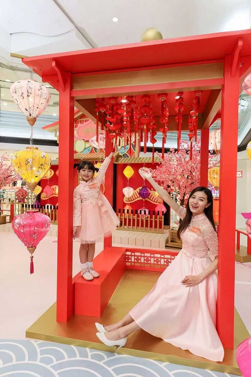 11 荃灣廣場【美陳主題:福氣滿滿櫻花園】有別于傳統(tǒng)新春大紅色,荃灣廣場以一眾少女最愛的粉色及色彩系列為基調(diào),為5樓平臺花園【福氣滿滿福滿園】打造成一個匯聚「祝?!?、「希望」及「幸?!沟男履陦艋么蚩ㄊサ亍!靖鉂M滿福滿園】呈獻3大賀年打卡位,先以逾13米長、20,000個「?!棺纸M成、由8款顏色打造的「幻彩福字步道」掀起序幕,漫天七彩「福」字形成一道七色彩虹;再以玩味感十足的「大吉大利全盒」為你送上甜甜蜜蜜的祝福;最后,走到「福氣滿滿櫻花園」內(nèi),在人氣爆燈、由 188個圓球砌成的粉紅櫻花許愿樹下許下你2020年的愿望。
