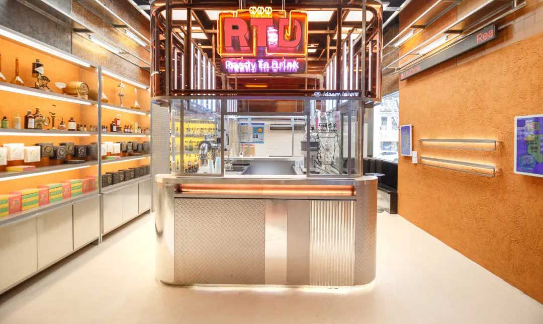去年年底開業(yè)的嶄新潮流地標淮海TX,最近來了一家全新概念的飲品店RTD??此瓶蓯劭犰诺摹澳滩璧辍蓖獗硐拢u的卻是精良品質的雞尾調酒。