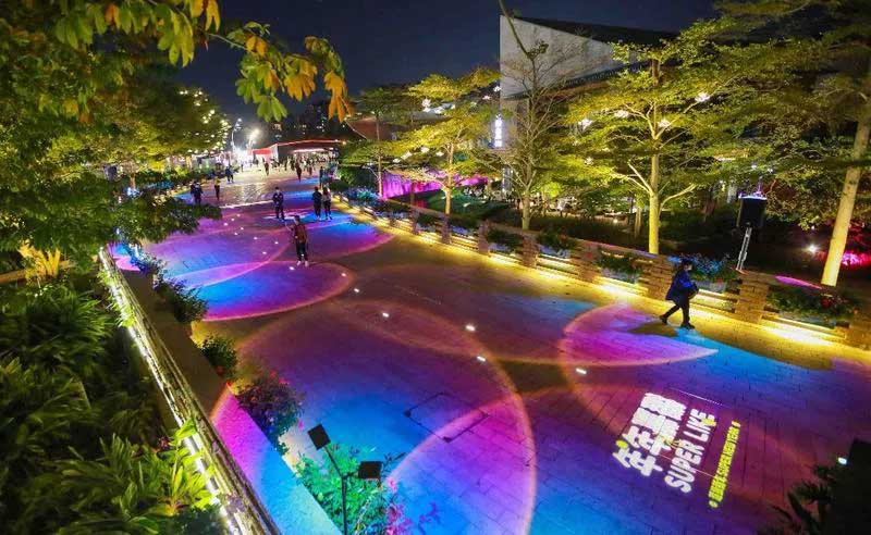 從開(kāi)闊的狂歡廣場(chǎng)行至曲水灣的穿街水道邊,曲水碼頭旁,一柱花蕊閃爍著光芒,周圍無(wú)數(shù)顆星星飄浮在空中,發(fā)光發(fā)亮?!靶侨铩ば脑浮笔且粋€(gè)讓星星“復(fù)活”的互動(dòng)裝置,從“芯”許愿,如花蕊一樣,溫暖傳遞愛(ài)的祝福。本次復(fù)活計(jì)劃也是一次公益行為,公眾為星星所支付的費(fèi)用將部分捐贈(zèng)至深圳市華基金生態(tài)環(huán)?;饡?huì)。為隕落的星星鼓氣加油,同時(shí)也帶著自己的愿望重新放飛每一顆星,愛(ài)和愉悅感在一次次升空中傳遞。