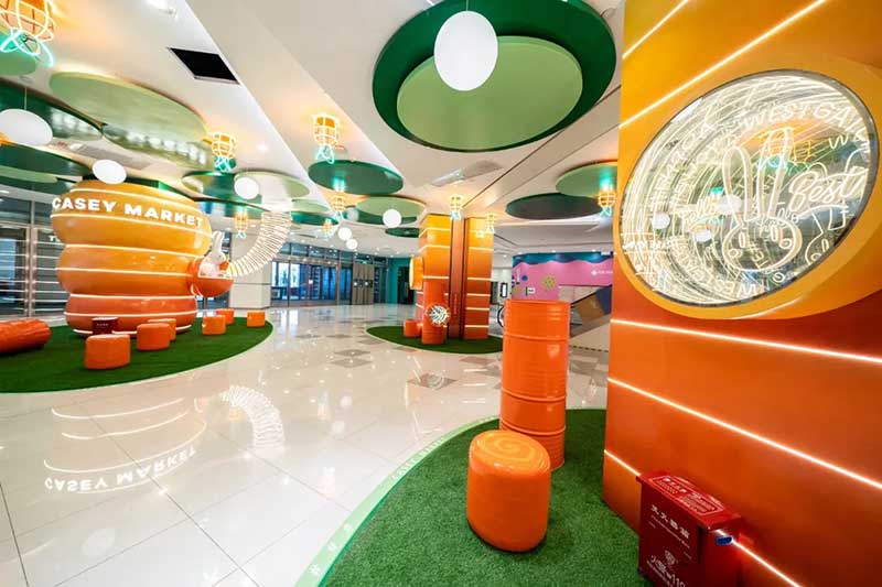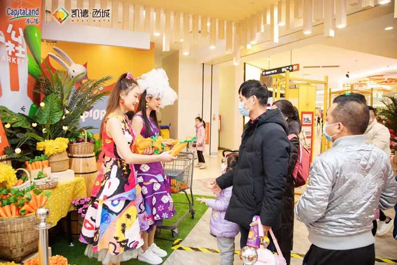 凱德·西城以原創(chuàng)IP凱西兔(CASEY)形象打造的主題街區(qū)——“胡蘿卜公社”在商場(chǎng)負(fù)一層開街亮相,吸引大批市民前來打卡和消費(fèi)。街區(qū)進(jìn)一步豐富小食輕餐、零售體驗(yàn)品牌,帶給區(qū)域消費(fèi)者更多更豐富的消費(fèi)體驗(yàn),更加明亮和趣味的場(chǎng)景打造,不僅讓小朋友們沉浸在凱西兔的萌趣中,更讓大朋友們感受到凱德·西城的“變”與“潮”。