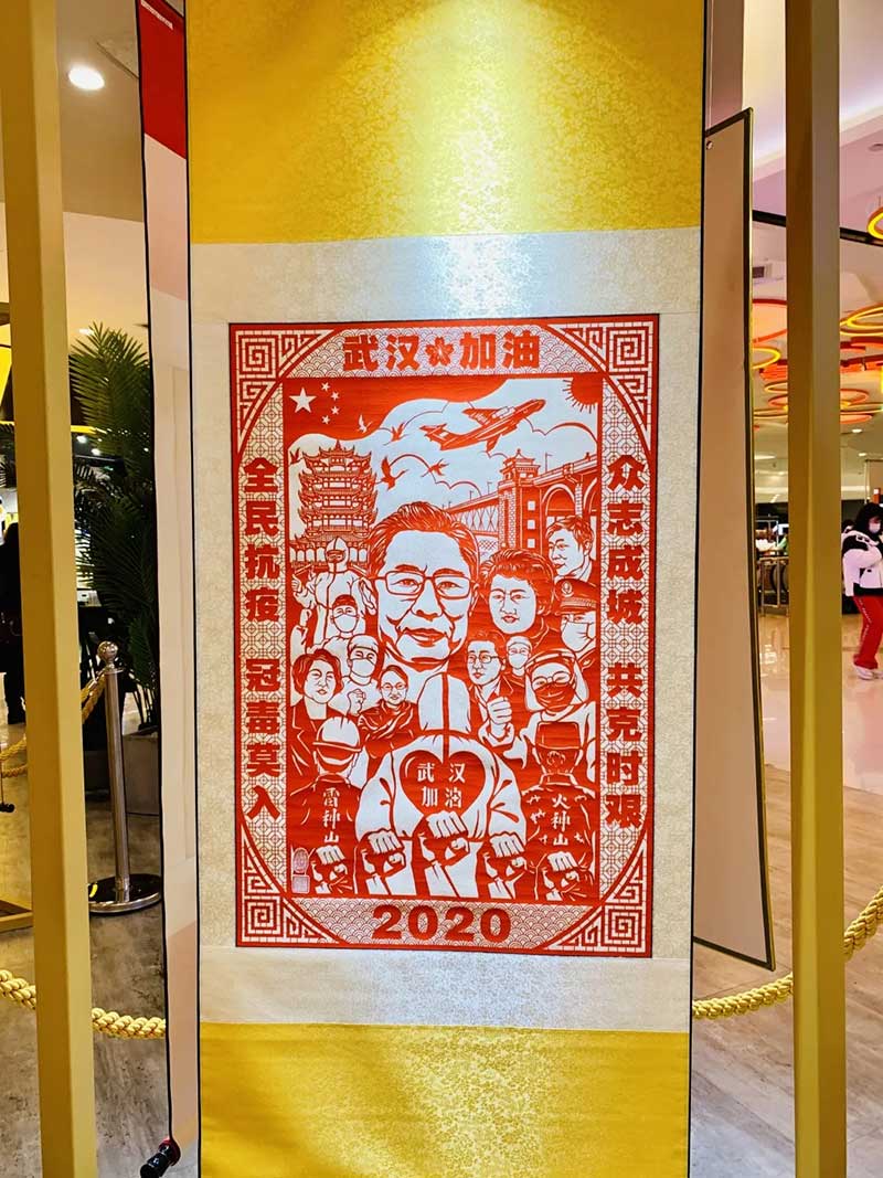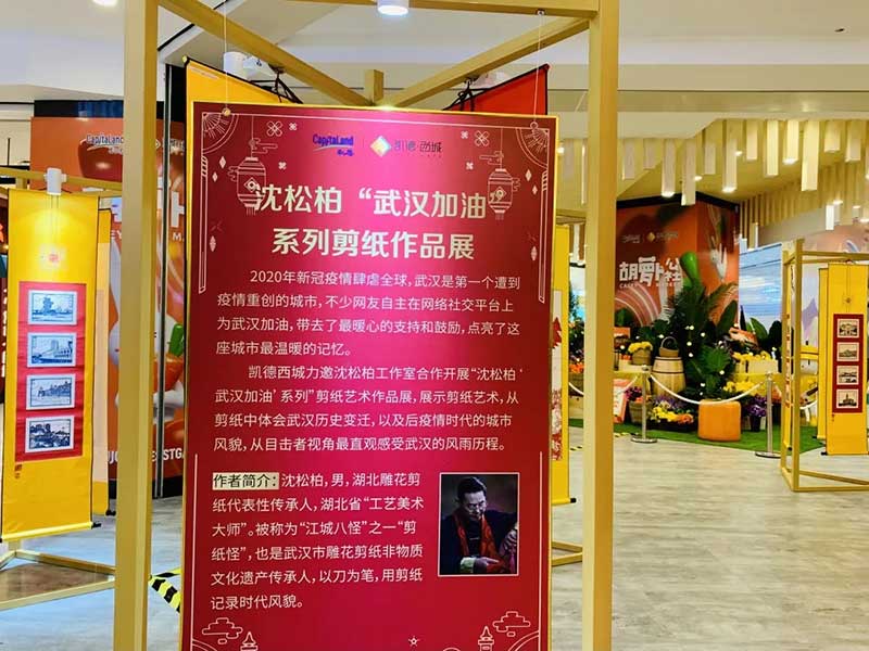 2020年初,一場(chǎng)突如其來的疫情改變了所有人的生活。為致敬這場(chǎng)抗擊疫情的戰(zhàn)役,抗疫一周年“武漢加油”剪紙公益展在凱德·西城的“胡蘿卜公社”主題街區(qū)舉辦,本次展出的剪紙作品來自聯(lián)合國(guó)科教文組織授予的“工藝美術(shù)家”沈松柏老師,生動(dòng)展現(xiàn)了武漢人民在抗擊疫情期間的無畏精神,為這座英雄的城市加油致敬。