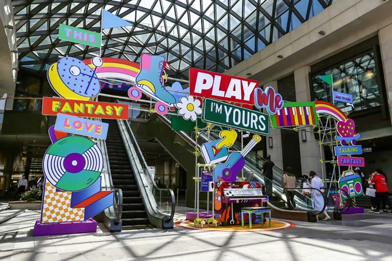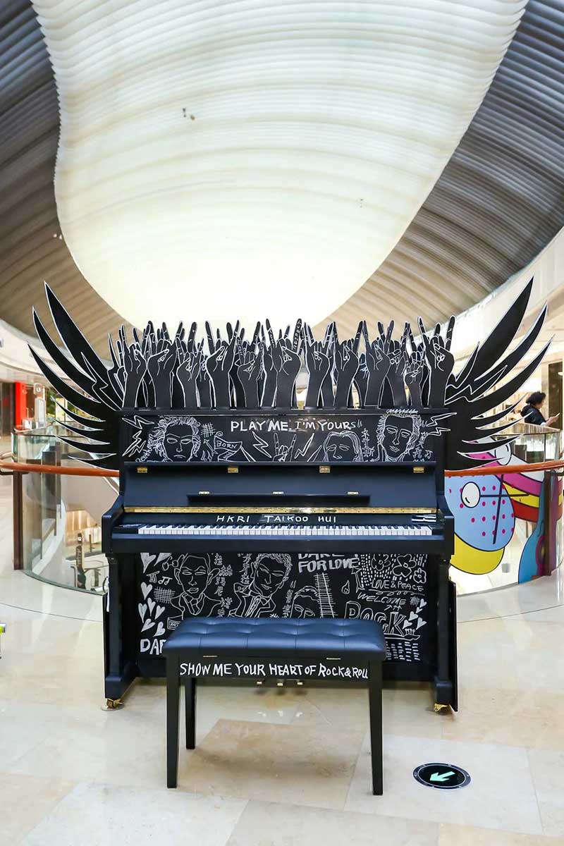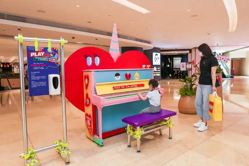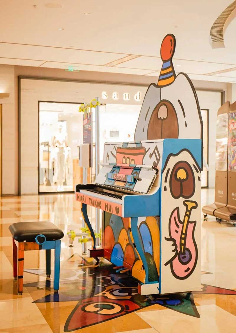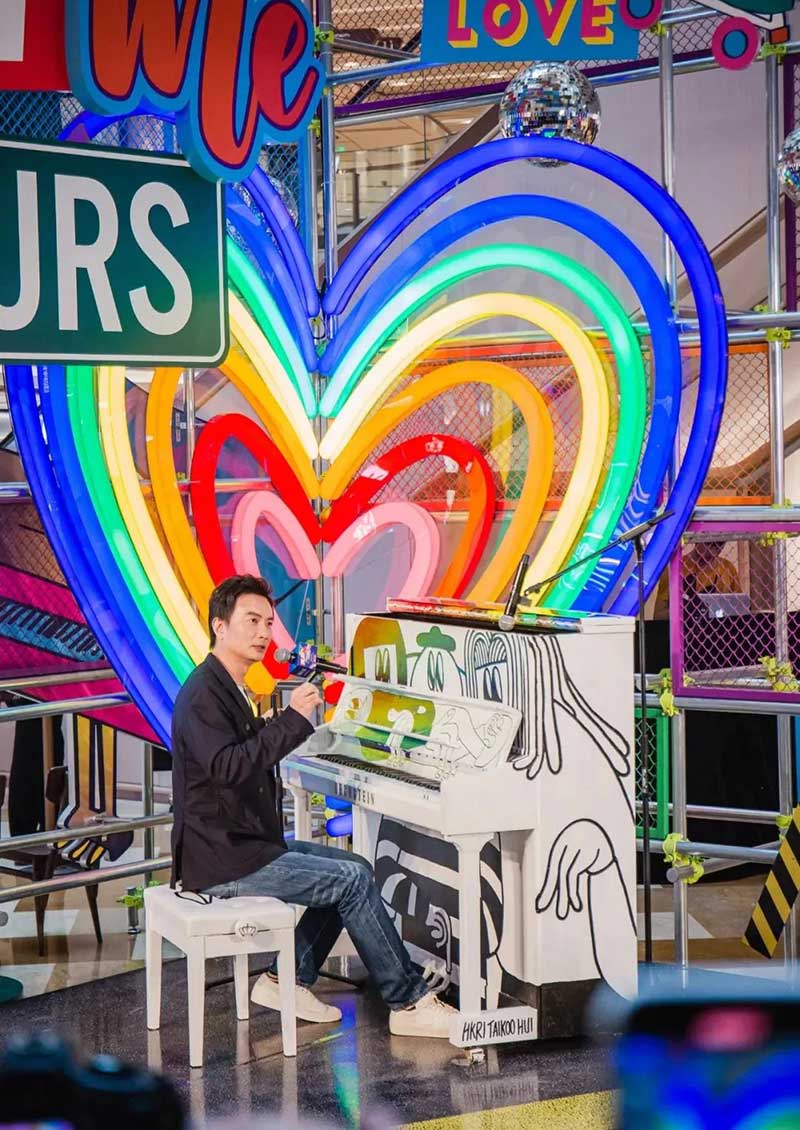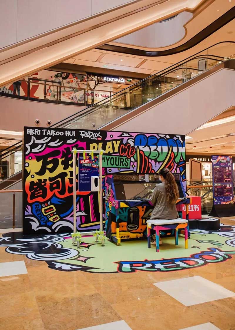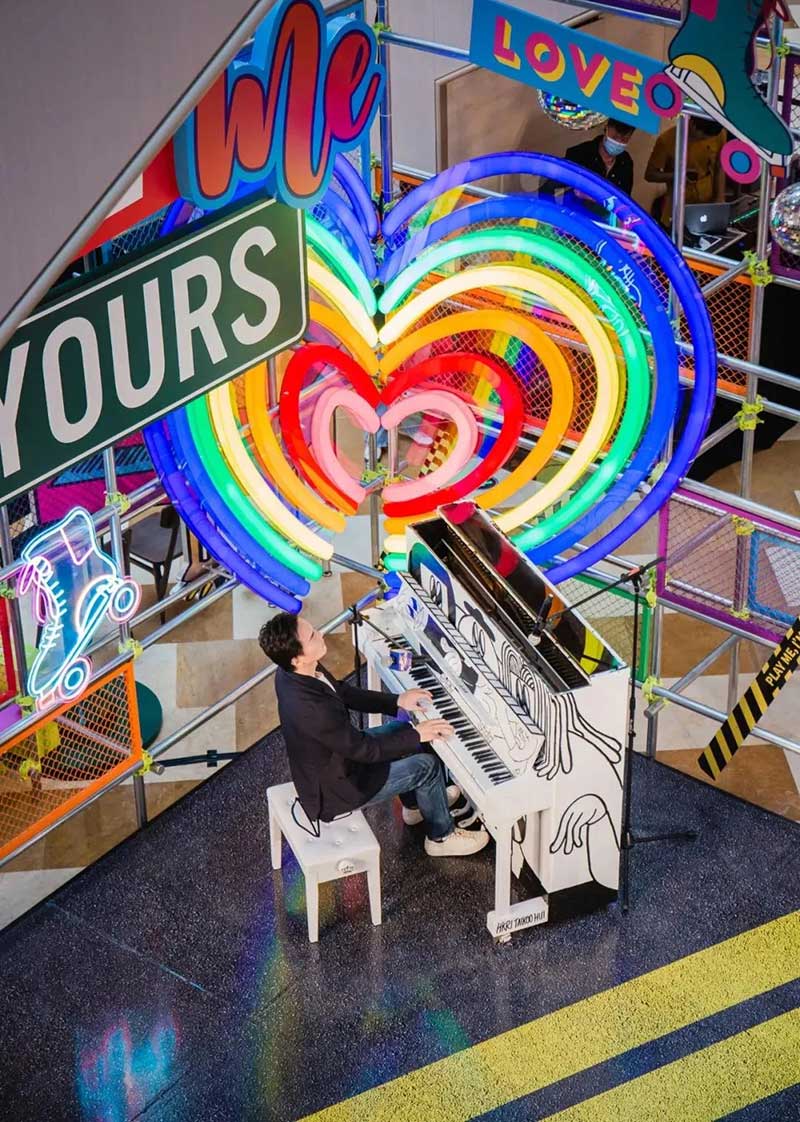 一架復(fù)古藝術(shù)涂鴉鋼琴擺放在興業(yè)太古匯北廣場(chǎng),樓梯口也變成了一個(gè)時(shí)光隧道的模樣。穿越這個(gè)隧道,斑長(zhǎng)仿佛來(lái)到了一個(gè)80年代音樂現(xiàn)場(chǎng),復(fù)古的logo、動(dòng)感的音樂,一場(chǎng)復(fù)古派對(duì)即將開啟!18架復(fù)古涂鴉鋼琴擺放在商場(chǎng)各個(gè)角落,每個(gè)經(jīng)過(guò)這里的人都可以彈奏。被音樂和鋼琴包裹的興業(yè)太古匯,不但吃喝玩樂一整天,還能享受一場(chǎng)鋼琴音樂帶來(lái)的瞬間治愈。作為2021年“Play Me, I’m Yours”公益鋼琴活動(dòng)的「鋼琴慈善大使」,聽到李泉現(xiàn)場(chǎng)彈奏音樂,真的超級(jí)治愈!