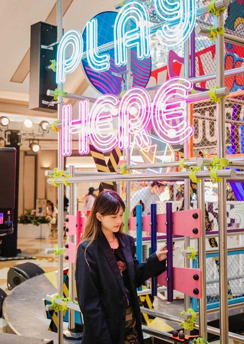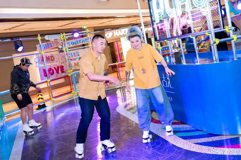 今年的興業(yè)太古匯整個(gè)變身80S復(fù)古輪滑場(chǎng),主題新增了復(fù)古輪滑和80年代復(fù)古街頭元素等。從輪滑場(chǎng)、商場(chǎng)bgm到各種陳列裝置……一場(chǎng)融合了輪滑、鋼琴、音樂等的80年代復(fù)古派對(duì)華麗開啟!離開地面的速度感伴隨著復(fù)古音樂,整個(gè)人的心情up up!輪滑現(xiàn)場(chǎng),竟然還有酷炫動(dòng)感DJ,在音樂變換中大家穿越到80S,“盡琴”搖滾!迪斯科球,老式舞廳霓虹燈,不間斷的復(fù)古音樂,帶你一秒回到80年代的夜生活。
