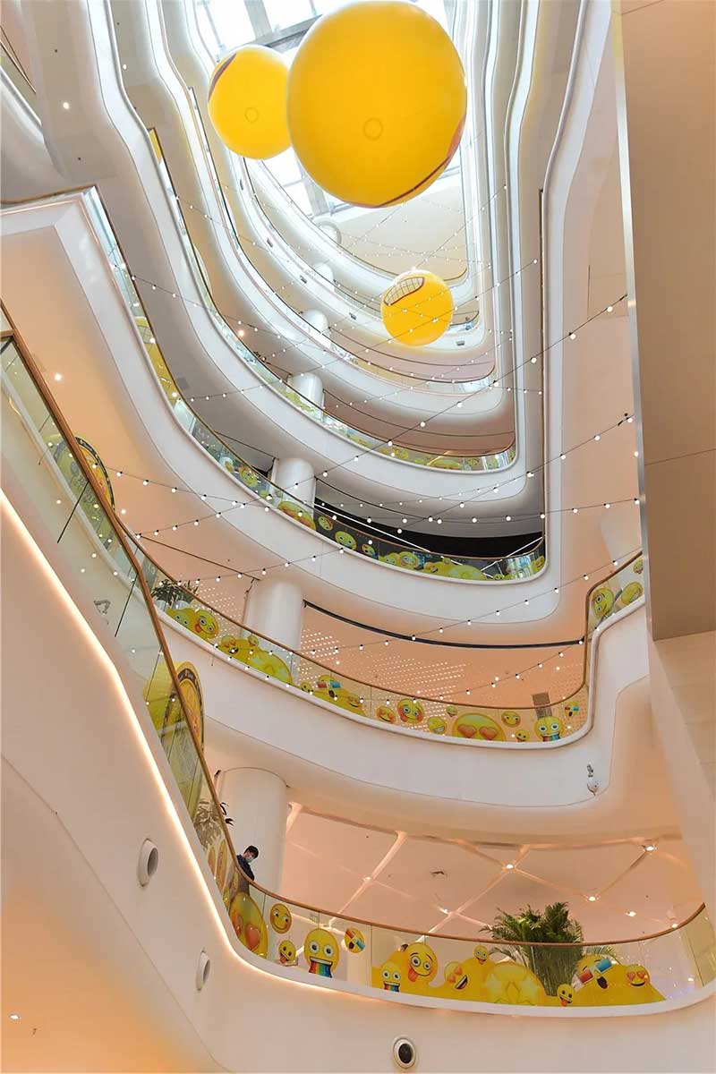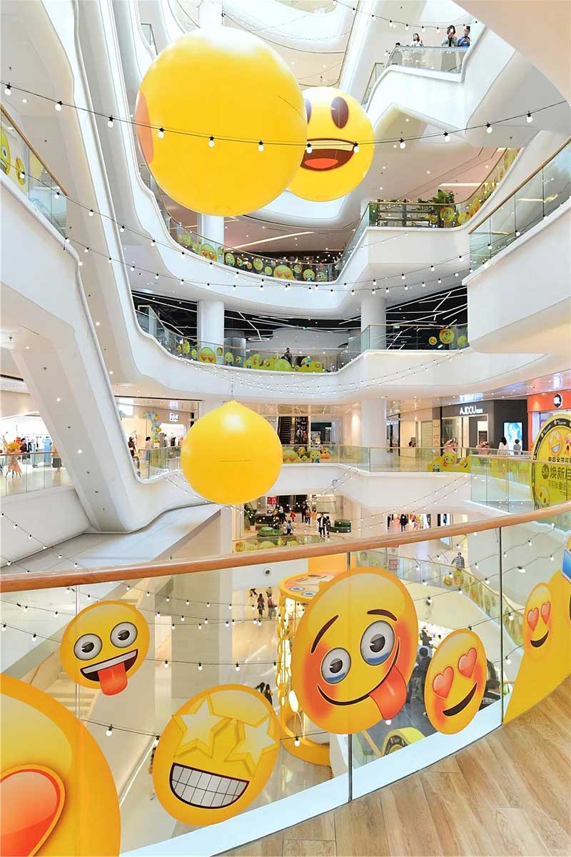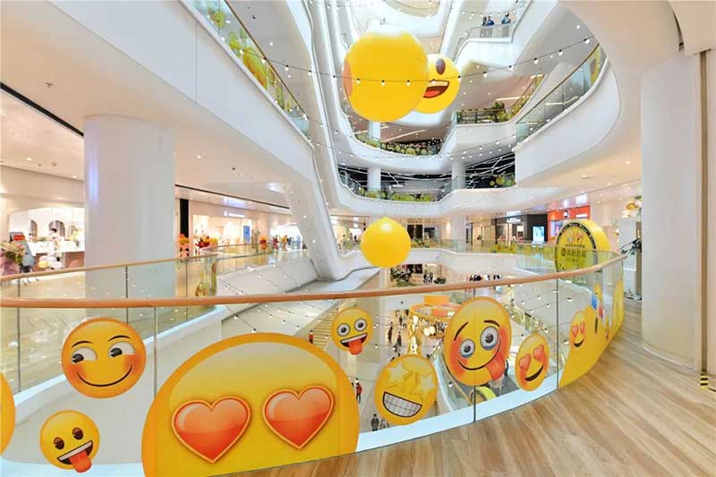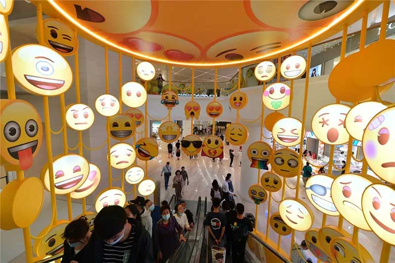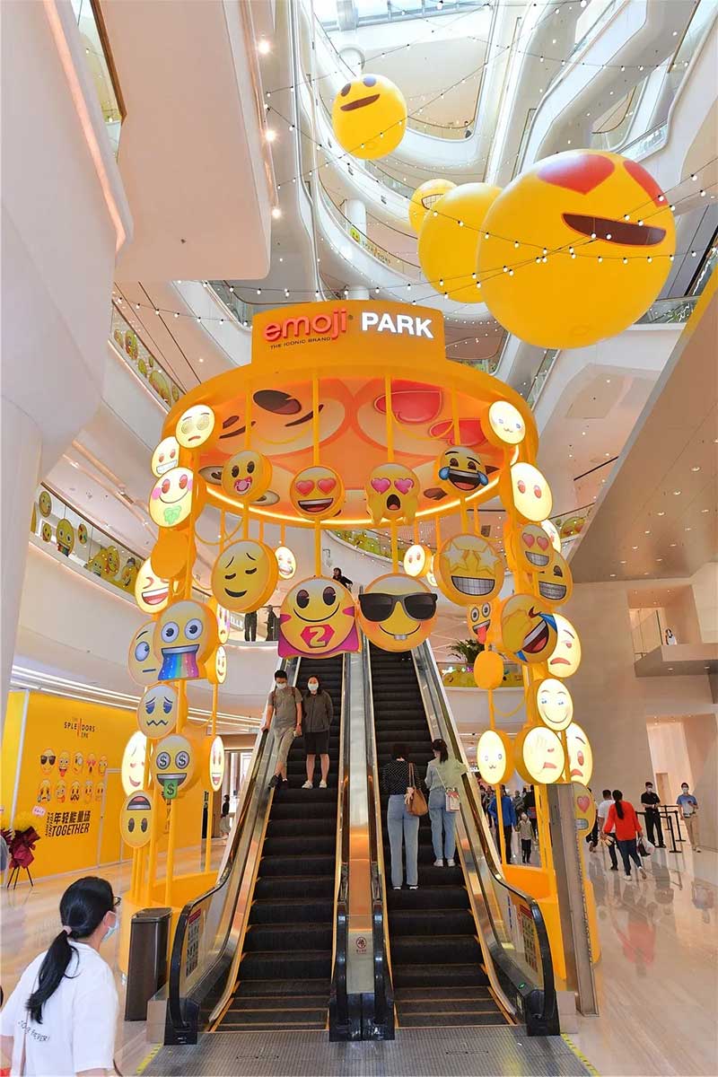 全球潮流IP emoji重磅打造emoji park 帶來一場歡樂盛宴,本次設(shè)計有四大亮點,在構(gòu)思的初期考慮利用感受來構(gòu)想,主題設(shè)計上考慮大家越來越離不開手機作為多媒體閱讀,所以大玩emoji表情包設(shè)計就橫空出世了。如今購物已經(jīng)離不開虛擬加實體,在設(shè)計意念上當(dāng)然非開心主題莫屬啦,把全新的覽秀城帶出更年青,時尚,活力來?;盍σ卜謨?nèi)外,所以意念上是把年青人的心聲用emoji表達!貫通地鐵及商業(yè)空間,設(shè)計了多個大型emoji公仔區(qū)域、這個是必經(jīng)通道,而為了配合購物中心加大吸引力和加強玩味的要求,一些趣味性的游戲裝置和大型墻畫將連接連廊的前端和轉(zhuǎn)接位!