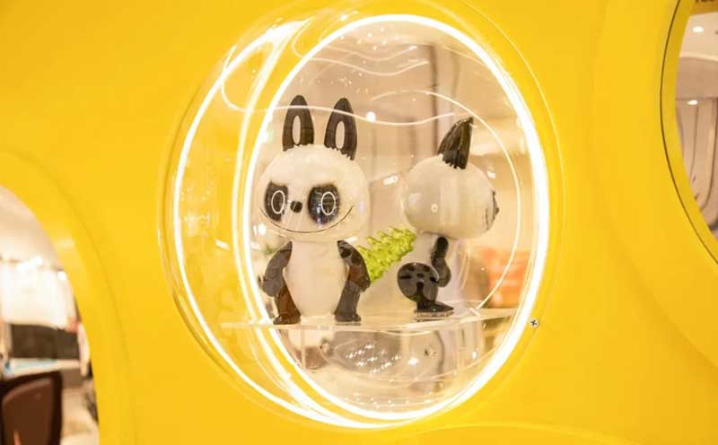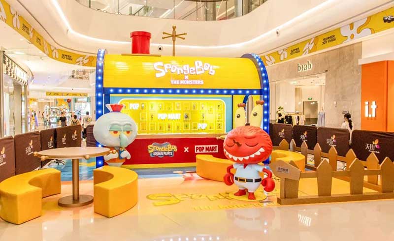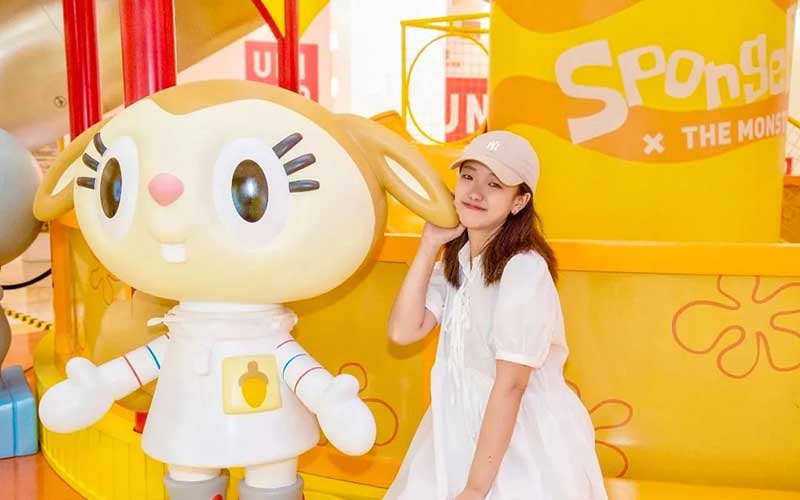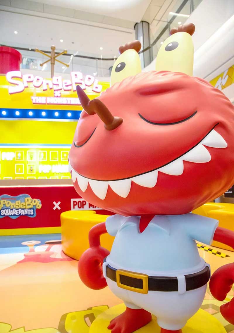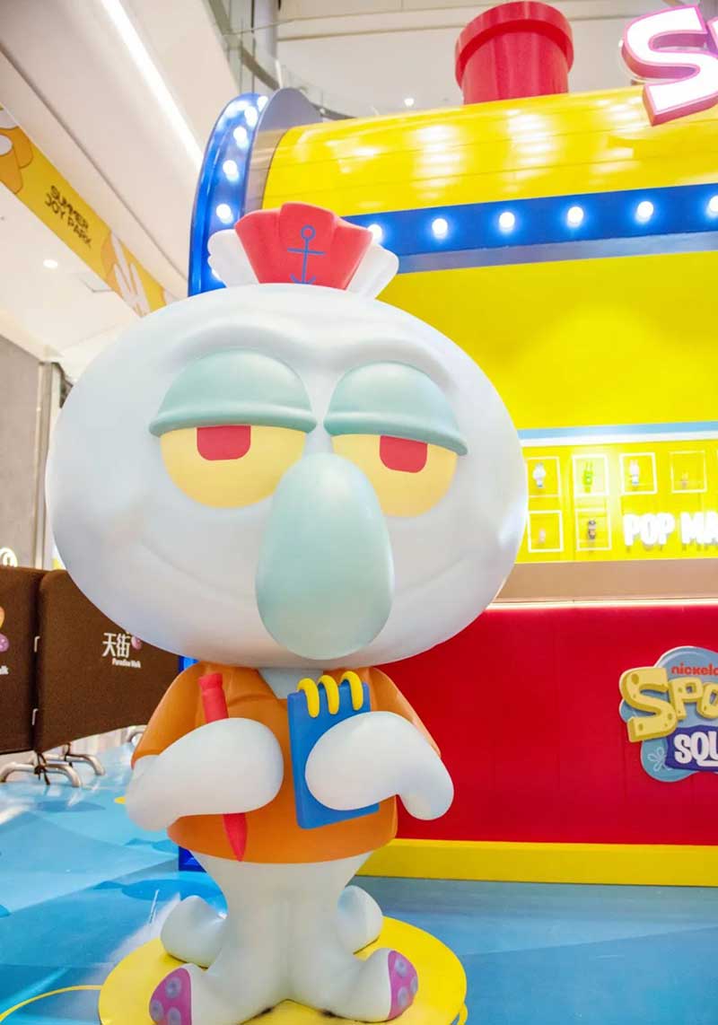 步入中庭就是大名鼎鼎的蟹蟹便利店啦,打卡怎么能放過這里呢。進入蟹蟹便利店內(nèi)部,一整墻的SPONGEBOB X THE MONSTERS的玩偶瞬間吸睛,每一個都十分精致可愛。在蟹蟹便利店的背面,一左一右站立著我們店中的靈魂收銀員“章魚哥×SPOOKY”和視金錢如生命的“蟹老板×ZIMOMO”。側(cè)面則作為展示區(qū),不僅有4款SPONGEBOB X THE MONSTERS人物展示,周圍還分布了大大小小的哈哈鏡,看到自己扭扭歪歪的身體,搞怪模樣瞬間沖散所有不開心。小小便利店,處處都有新發(fā)現(xiàn)!