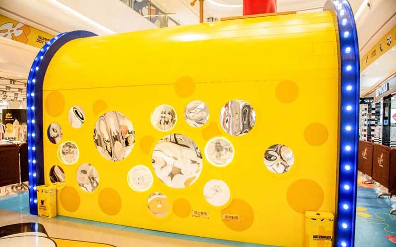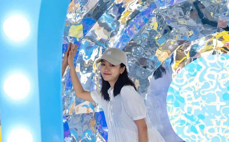 要問最最能抓住眼球的是什么?這顆金色大菠蘿當仁不讓!更絕的是,一走進去它竟是一間奇妙鏡面屋子!鏡面屋的原理是使鏡面反射和燈箱畫面等結(jié)合,達到萬花筒的效果。圓形屏幕不斷翻轉(zhuǎn)花樣,在經(jīng)過四面的的鏡面反射,讓這里面變得夢幻又炫酷。不斷變幻的樣式,映射下來,走進其中就像是游進了陽光投射下的淺海一般。當然這里也是一個出片寶地,趕緊叫上小姐妹一起來打卡!