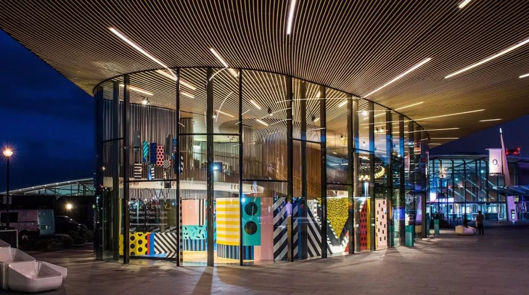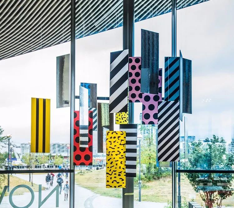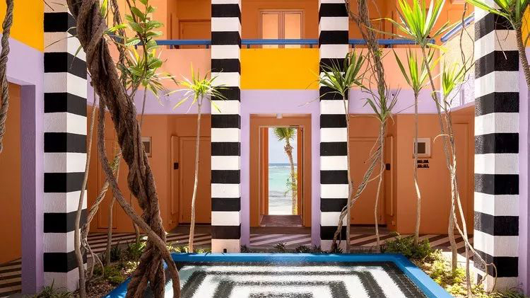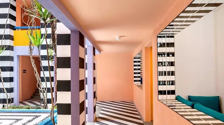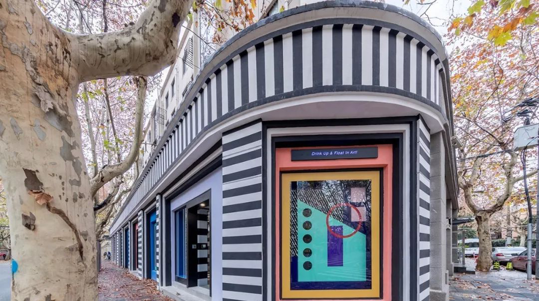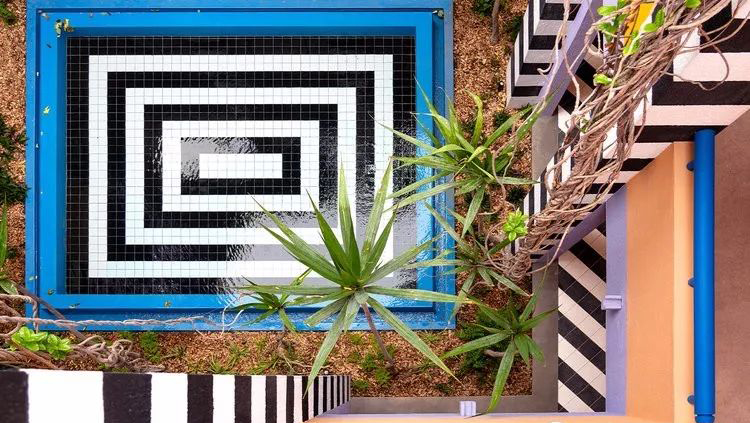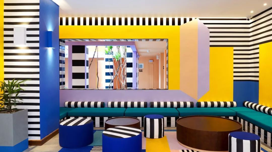 藝術(shù)家Camille Walala 以孟菲斯派的藝術(shù)風(fēng)格為靈感,在建筑物的表面涂上了色彩鮮明的幾何圖案,呈現(xiàn)出視覺錯視的效果。