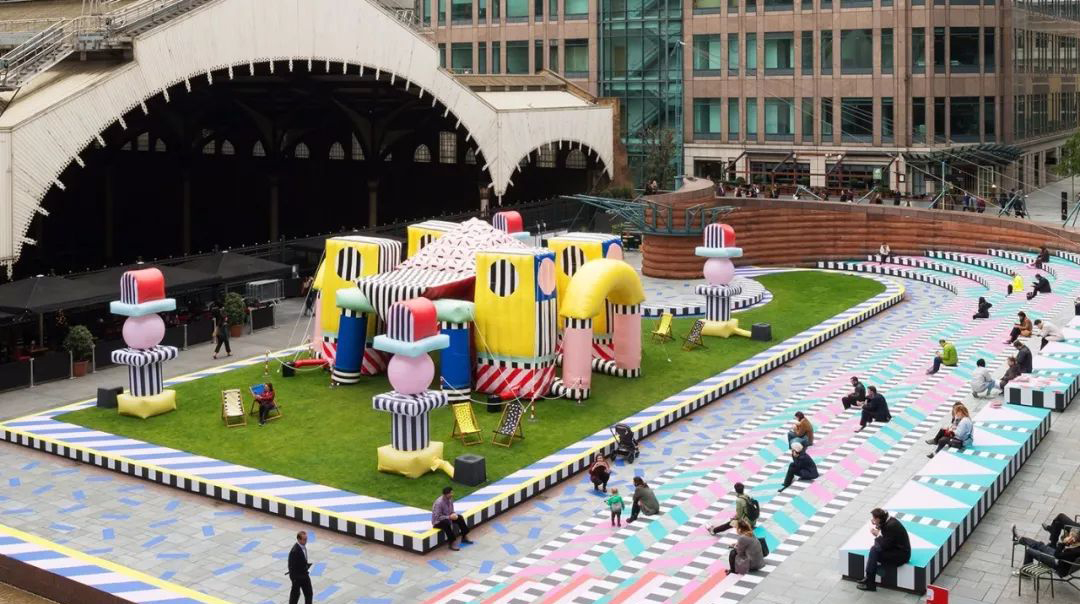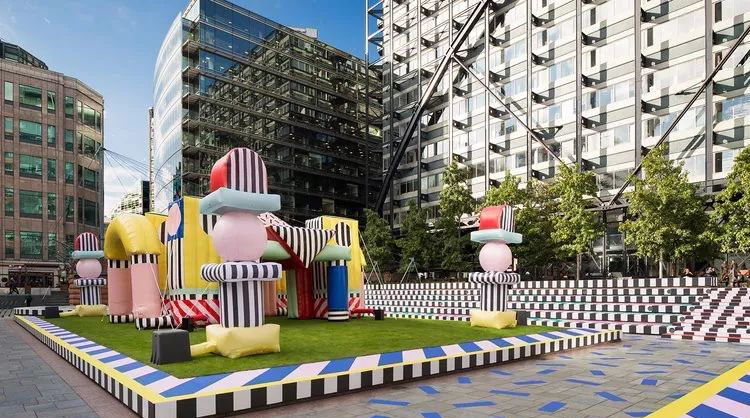 Camille Walala最初是一位面料設(shè)計師,擅長空間場地營造,賦予空間以鮮亮的色彩圖案混搭風(fēng)格。她的設(shè)計遍布倫敦、悉尼、紐約各處的場地并用于裝置藝術(shù)、建筑,極具辨識度與豐富的張力。