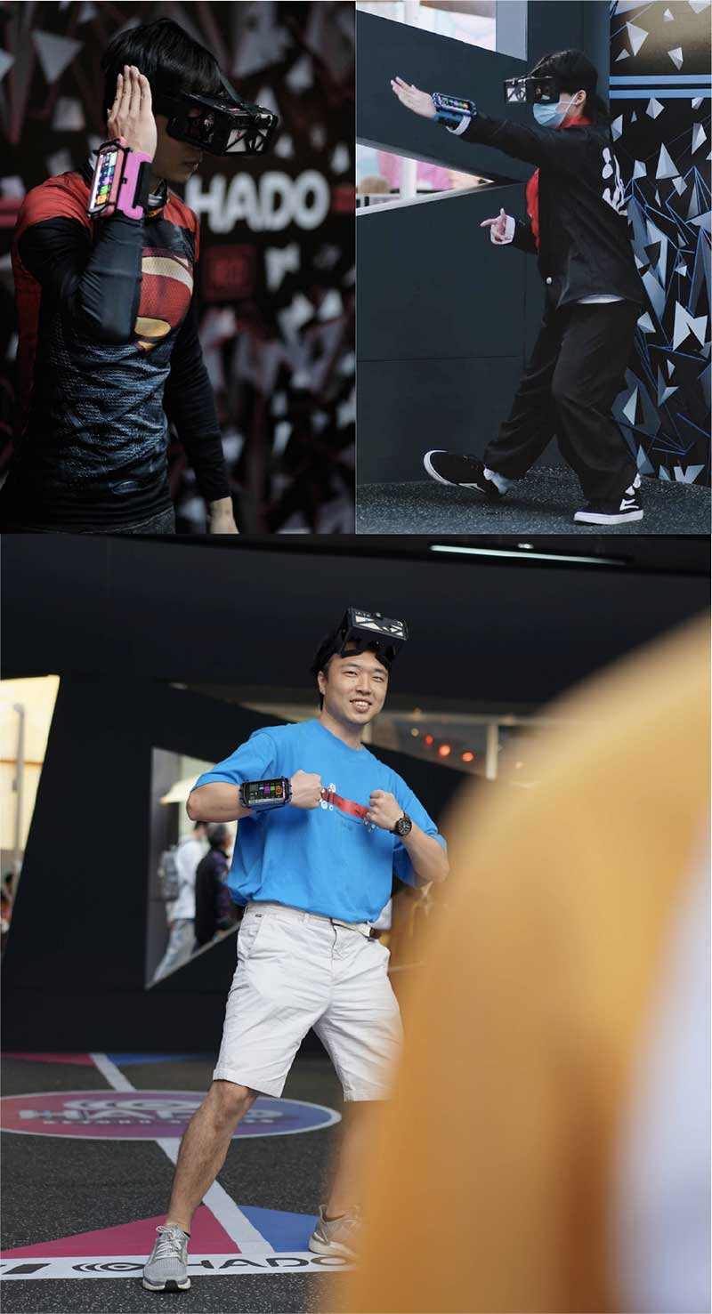在這為期13天的活動(dòng)中,HADO啟動(dòng)了3,000+場對戰(zhàn),玩家人數(shù)突破15,000人次,現(xiàn)場吸引人流超過30萬人。每一場對戰(zhàn),都會(huì)吸引來大量的觀眾前來觀戰(zhàn),現(xiàn)場的賽事解說在分析戰(zhàn)況的同時(shí),也為大家傳遞了HADO這項(xiàng)全新科技運(yùn)動(dòng)的文化。上場的玩家只有戴上AR頭戴設(shè)備和腕帶傳感器,用視野中的準(zhǔn)心瞄準(zhǔn),揮動(dòng)手臂,即可發(fā)射能量球進(jìn)攻!