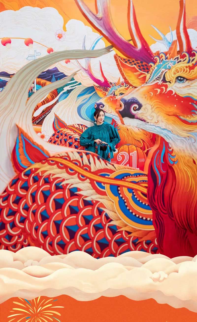 福字點燈互動區(qū)也是本次快閃店的一大亮點區(qū)域,新年想要與福氣好運永不分離的朋友們趕緊去互動一番,沾沾福氣。整整三面墻的大紅燈籠,讓人眼前一亮。點擊正前方的互動IPAD,有六款不同寓意的“福鹿”燈籠可供選擇?!跋卜炅季壙傢樎埂?、“闔家歡合開心鹿”、“好運不斷全爆鹿”、“旗開得勝攔俸鹿”等,無論你是求好運良緣,還是升職加薪,一站式給你安排上。選取好屬于你的“福鹿”燈籠,祈福儀式正式開始,背后的紅燈籠也會跟著悉數(shù)亮起,浪漫十足又很有儀式感,非常好出片!