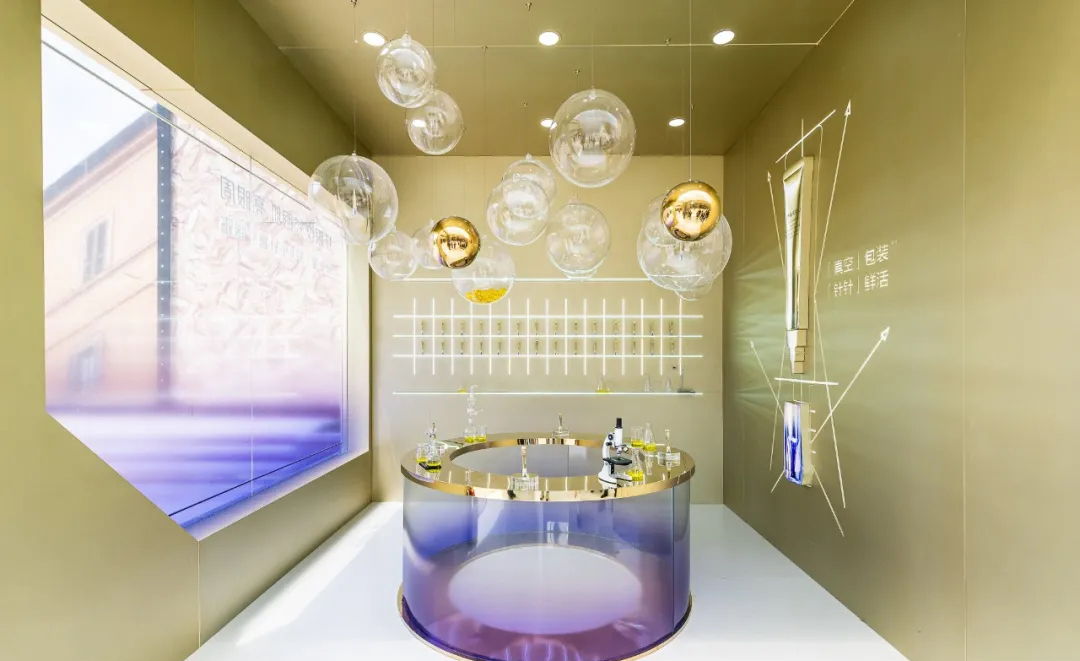 進(jìn)入真空艙的儀式感當(dāng)然不能少,在啟動(dòng)艙前輕輕按壓艙門,艙門打開的一瞬間就可以進(jìn)入到另一個(gè)空間了。進(jìn)入艙內(nèi),艙門關(guān)閉的同時(shí)還會(huì)觸發(fā)到艙內(nèi)的光效,科技感滿滿的光效讓人恍惚間以為自己正在穿梭在一個(gè)真空的世界,跟隨著光感的變化和全程智能的語音就可以通往探秘真空艙內(nèi)部啦。進(jìn)入到小針管靈光真空間就可以看到陳列在這里的產(chǎn)品,整個(gè)空間以小針管真空?;畎b為靈感,產(chǎn)品的陳列方式也是以形象化的真空包裝設(shè)計(jì)而成。真空艙內(nèi)的重頭戲還得數(shù)純A真空中轉(zhuǎn)站,在這里陳列了資生堂悅薇全新純A小針管,并且還有配套的產(chǎn)品動(dòng)態(tài)講解,小伙伴們不僅可以初步了解到產(chǎn)品特點(diǎn),還能夠親身體驗(yàn)試用產(chǎn)品哦。